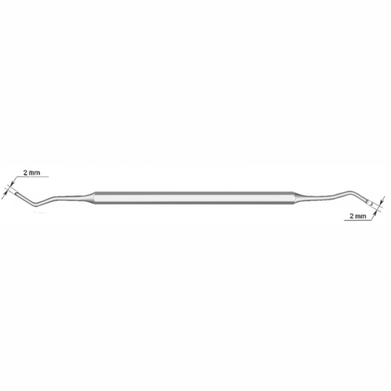 Вторая рабочая часть — экскаватор 2,0 мм, расположен под углом 45° относительно ручки.