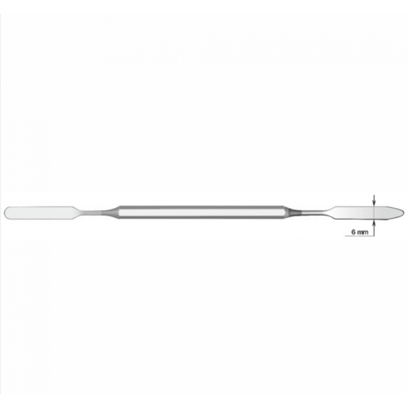 Шпатель представляет собой цельное изделие длиной 180мм, с шестигранной ручкой и двумя рабочими частями в виде шпателей.