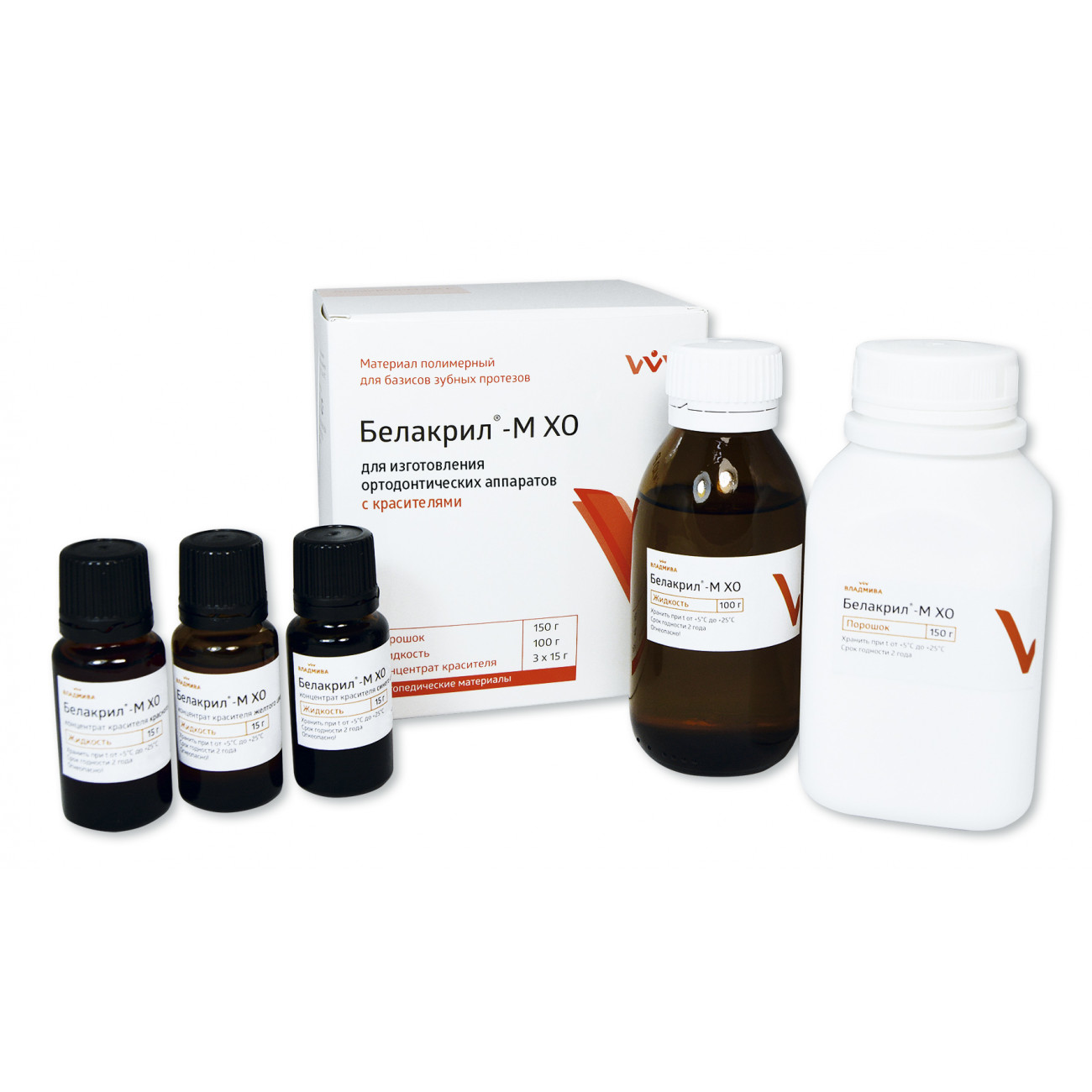 Материал «Белакрил»-Р выпускается в виде двух компонентов - порошка, содержащего полиэфиры метакриловой кислоты и катализатор реакции полимеризации перекись бензоила, и жидкости, содержащей мономер метилметакрилат после смешивания которых образуется полимер.