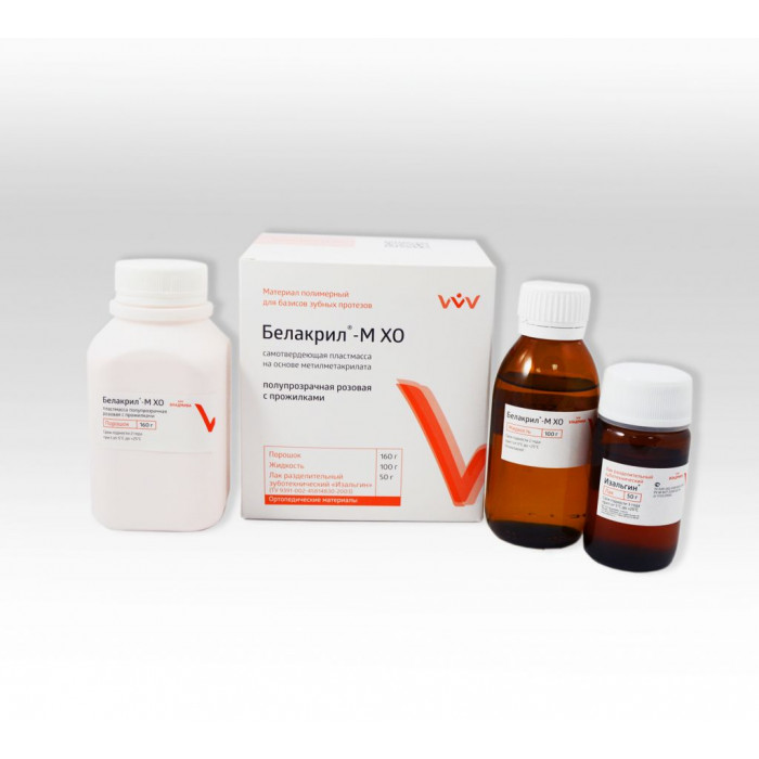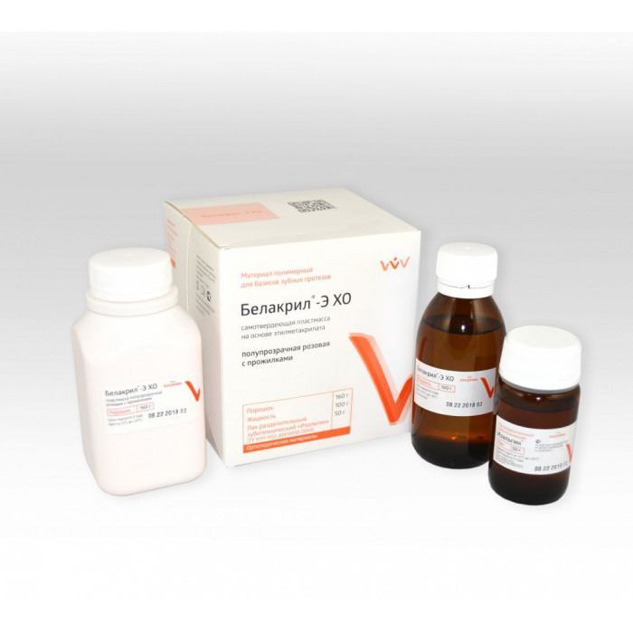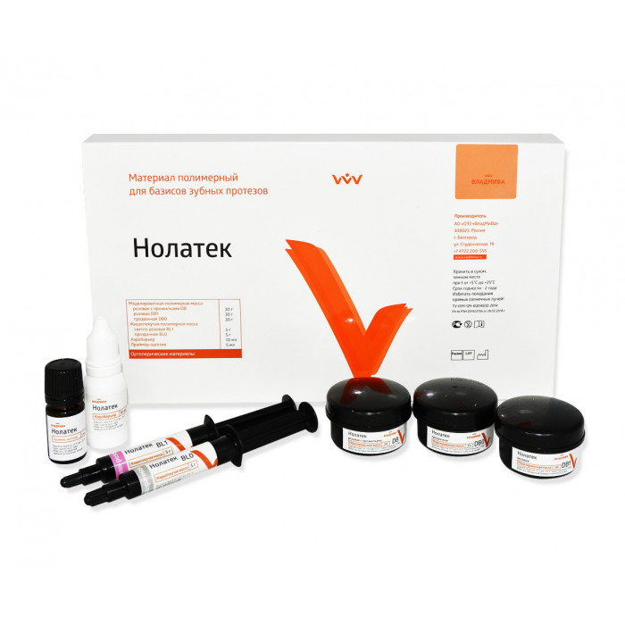 •Высокая косметичность протезов за счет полупрозрачности и введения в состав материала „прожилок", имитирующих мягкие ткани полости рта;