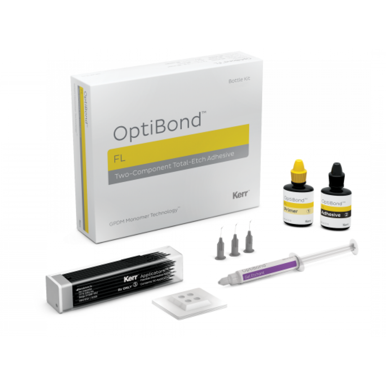 Двухкомпонентная адгезивная система тотального протравливания Optibond FL с суперадаптивными характеристиками способна полностью заменить традиционные прокладочные материалы, надежно заполняя все микрошероховатости на поверхности природного тканей зуба и выделяя фториды для предупреждения вторичного кариеса.