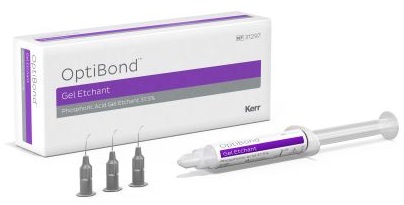 В состав набора входит ярко-фиолетовый протравливающий гель Kerr Gel Etchant на основе раствора фосфорной кислоты. Вязкий гель не стекает с поверхности зуба, при этом легко смываясь обычной водой.