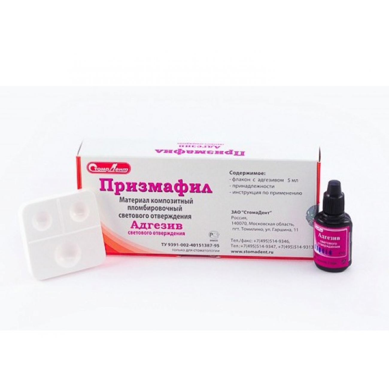 НАЗНАЧЕНИЕ. "ПРИЗМАФИЛ-АДГЕЗИВ" предназначен для создания надежного соединения между эмалью зуба и пломбировочным материалом светового отверждения.