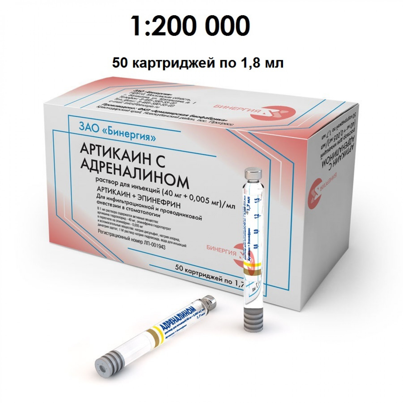 Артикаин Бинергия 1:200 000 - местноанестезирующее средство + α- и β - адреномиметик, комбинированный препарат, в состав которого входит артикаин (местноанестезирующее средство амидного типа) и эпинефрин (сосудосуживающее средство), который добавляют в состав препарата для пролонгации анестезии.
