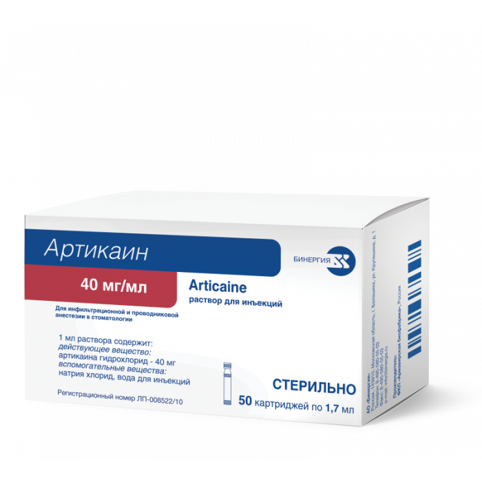 Артикаин Бинергия 1:200 000 - «Золотой стандарт» анестезии в стоматологии. Раствор для инъекций с низким содержанием эпинефрина практические не влияет на артериальное давление и частоту сердечных сокращений, благодаря чему препарат может использоваться у пациентов группы риска, в детском возрасте (у детей старше 4 лет), в период лактации. По результатам клинических исследований препарат Артикаин-Бинергия способен обеспечить адекватное и безопасное обезболивание для пациентов в возрасте от 60 до 80 лет.