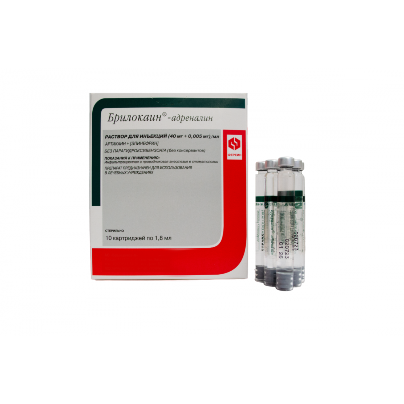 Анестетик карпульный Брилокаин-Адреналин, раствор для инъекций 1:200 000 (40 мг+0,005 мг)/мл - 1,8 мл, № 10