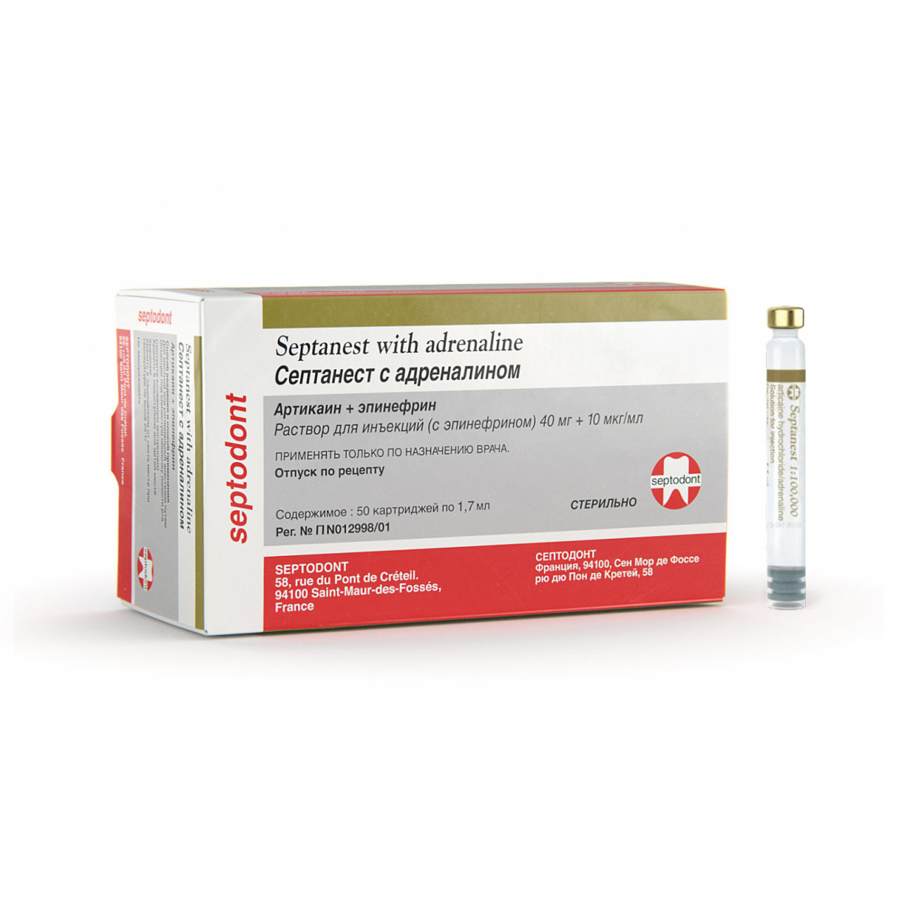 Cептанест - комбинированный препарат, в состав которого входит артикаин (местноанестезирующее средство амидного типа) и эпинефрин (адреналин) - сосудосуживающее