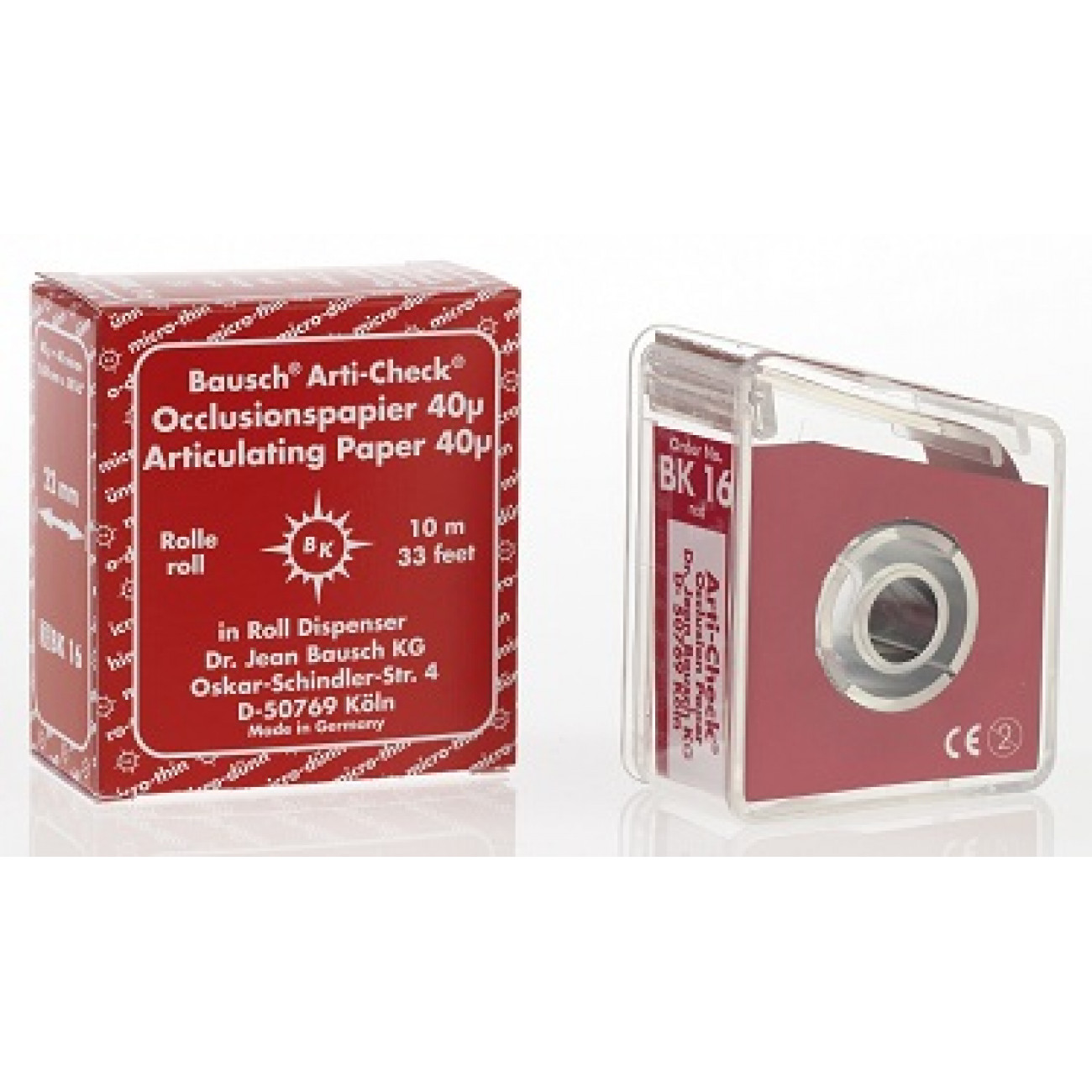 Окклюзионная бумага Бауша микродюн толщиной 40 мкм является очень тонкой и, в то же время, прочной бумагой, которая с обеих сторон покрыта жидкой краской. Малая толщина этой бумаги исключает получение ложных или смазанных контактных пунктов и обеспечивает точные, чёткие цветные отпечатки. Жидкокрасочное покрытие с особенной степенью надёжности выявляет все окклюзионные контакты даже на смоченных слюной золотых, керамических, полированных металлических или пластмассовых поверхностях. Специальное жидкокрасочное покрытие состоит из множества микрокапсул, наполненных краской. Микрокапсулы лопаются даже при незначительном давлении и высвобождают жидкую краску, окрашивая места контактов. Эта бумага может использоваться многократно, так как красящее покрытие обладает способностью к регенерации. Окклюзионная бумага Бауша микродюн толщиной 40 мкм особенно хорошо подходит для двухцветной демонстрации статической и динамической окклюзии. Для этого на первом этапе окрашиваются в красный цвет все контактные пункты в положении центральной окклюзии, а затем проводится второй этап с окраской динамических контактных пунктов в синий цвет. Использование синей бумаги на первом этапе и красной бумаги на втором этапе также даёт хорошие результаты.