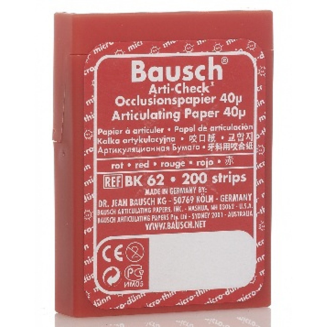 Артикуляционная копирка прямая 40 мкрн., 200 листов. Цвет: Красный