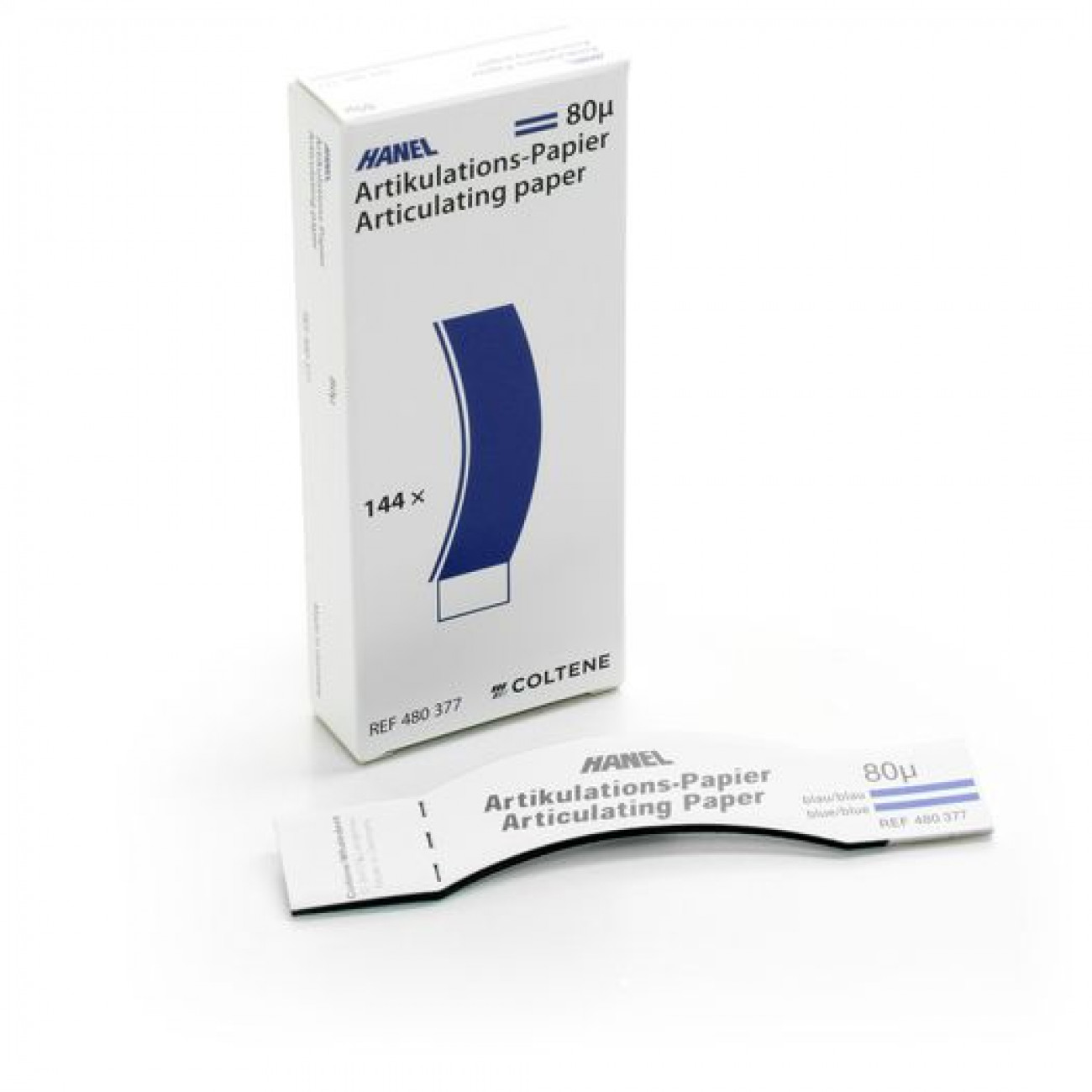 Hanel артикуляционная бумага U-, I-образной формы, покрытая с обеих сторон краской, используется в гнатологии. Обладает высоким маркирующим эффектом. При использовании на моделях может использоваться многократно, так как красящее покрытие обладает способностью к регенерации.