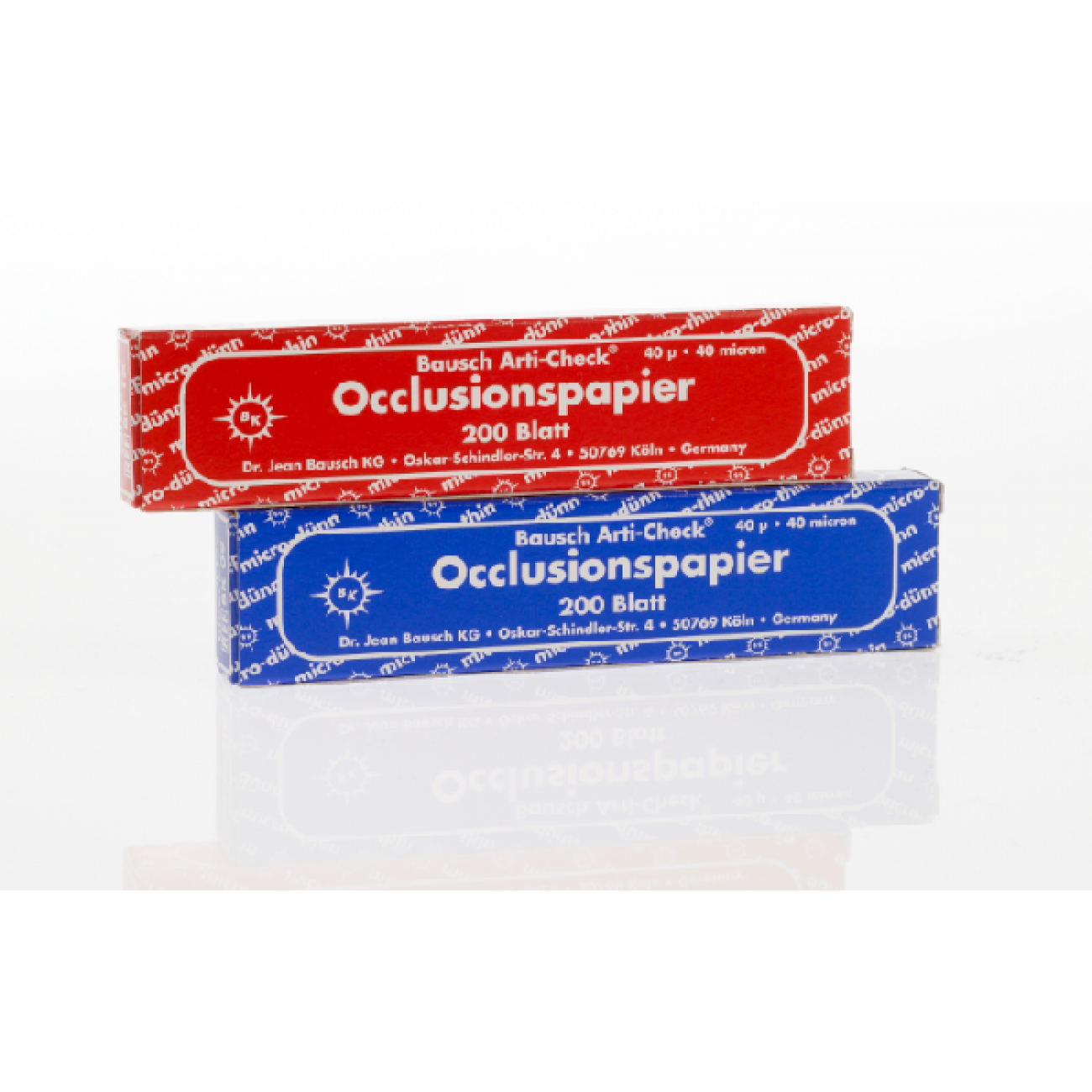 Окклюзионная бумага Бауша микродюн толщиной 40 мкм особенно хорошо подходит для двухцветной демонстрации статической и динамической окклюзии.