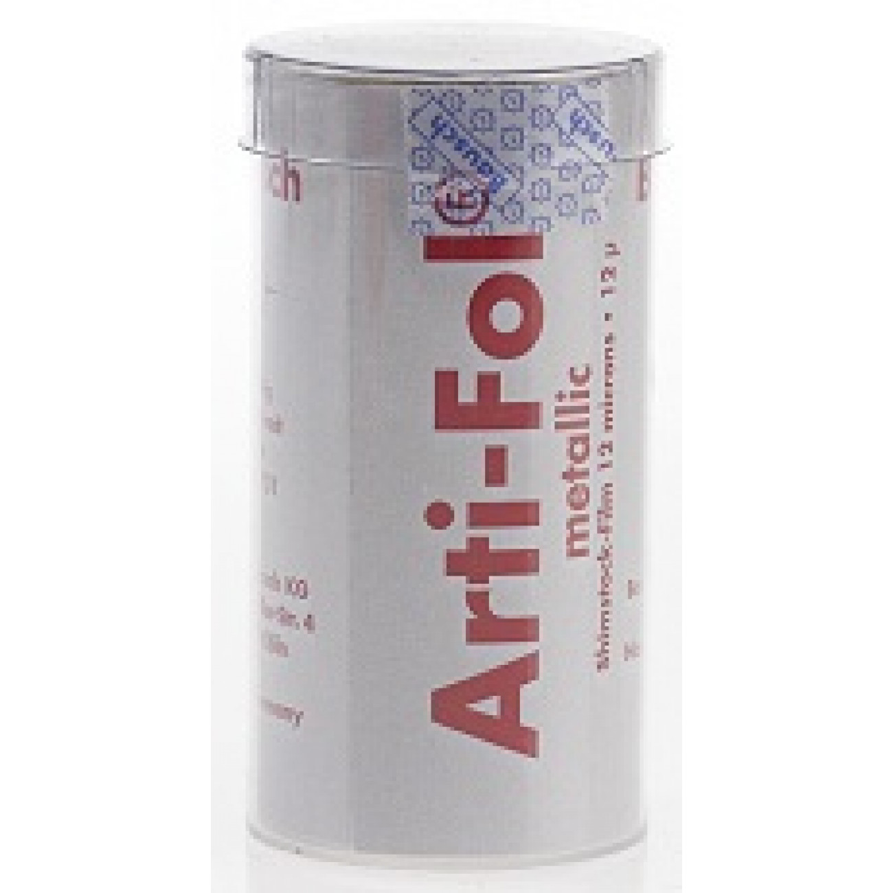 Проверочная фольга Arti-Fol® металлик толщиной 12 мкм получена с применением высокоточной технологии и имеет значительно улучшенные характеристики. Этот новый продукт состоит из металлизированной полиэфирной фольги (Shimstock-фольга) толщиной 12 мкм и красящего покрытия с новым составом компонентов. В ряде случаев такая комбинация имеет существенные преимущества. Новая фольга обладает повышенной красящей способностью. Особенно чётко видны контактные пункты на керамических и гладкополированных металлических поверхностях. Использование металлизированной фольги позволяет в значительной степени редуцировать проблему статических электрических сил. Эту фольгу можно накладывать на зубную поверхность без помощи пинцета. Прочность металлизированной фольги позволяет применять её при проведении резилиэнцпробы. Новая фольга Arti-Fol металлик, в отличие от обычной Shimstock- фольги, маркирует именно соответствующий контактный пункт. Металлический цвет обратной стороны фольги позволяет легко распознать, какая из поверхностей покрыта пигментом. Arti-Fol металлик, благодаря прочности и малой толщине, прекрасно подходит для проверки аппроксимальных контактов при примерке мостовидных протезов и коронок. Эту фольгу можно свободно вводить между аппроксимальными контактами, используя наш новый пинцет Arti-Fol BK 145. В нашем ассортименте имеется фольга Arti-Fol® четырёх различных цветов. В качестве дополнения к новой фольге Arti-Fol® металлик мы предлагаем также классическую Shimstock-фольгу шириной 8 и 16 мм.
