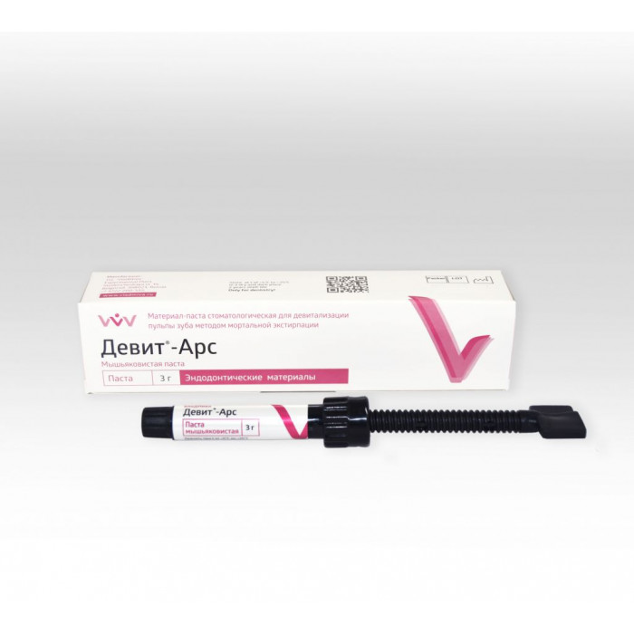 "Нон арсеник" — паста для девитализации пульпы зуба без применения мышьяка. Также используется как вспомогательное средство при повторных процедурах с применением мышьяка. Основу препарата составляет параформальдегид — мощный антисептик, в высоких концентрациях вызывающий контролируемый некроз тканей. Его пролонгированное действие обеспечивает девитализацию пульпы в течение 5–7 дней, минимизируя риск повреждения периодонта. Лидокаин в составе снижает болезненные ощущения во время процедуры.