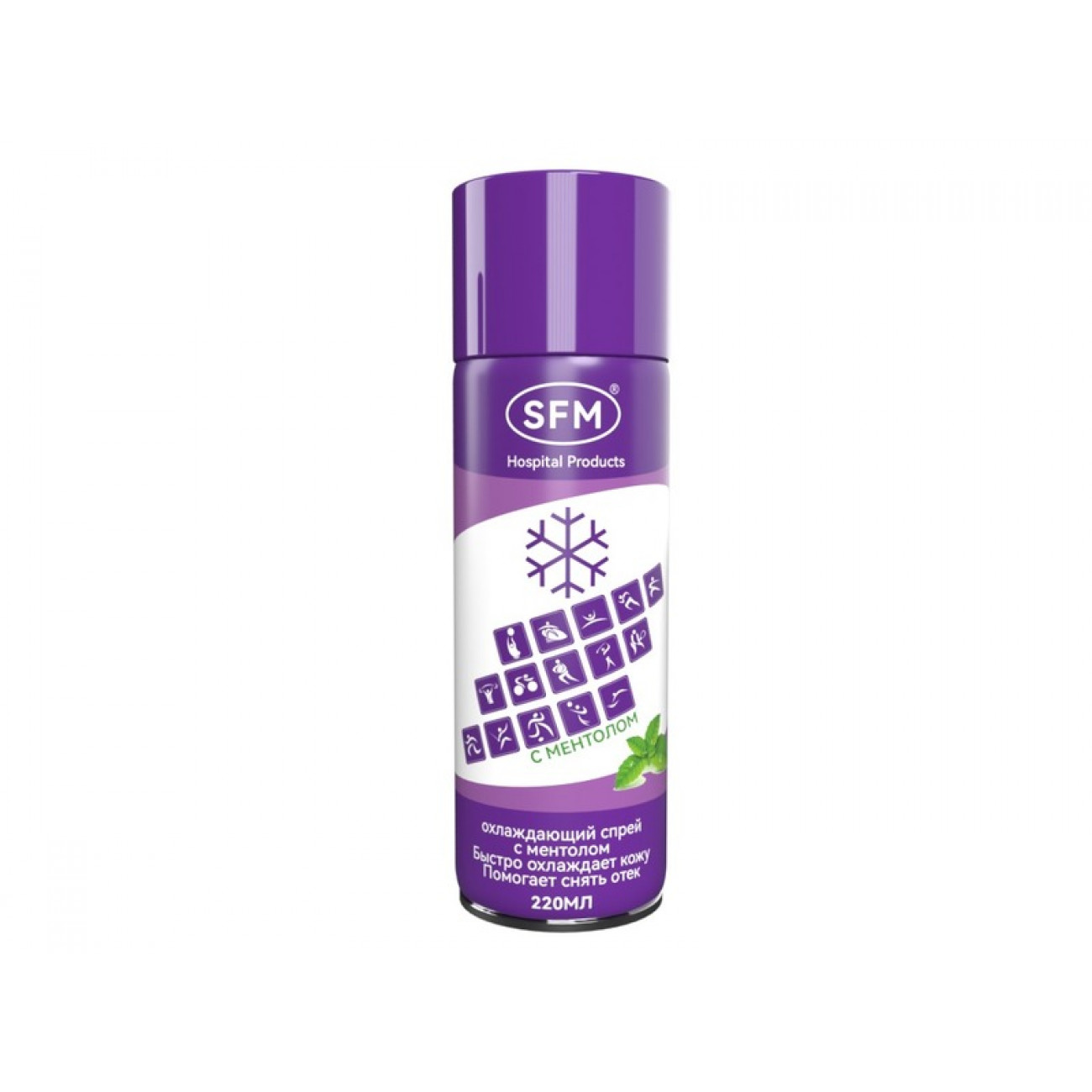 Охлаждающий спрей SFM предназначен для охлаждения кожных покровов при ушибах, травмах, растяжениях, полученных в результате занятия спортом и (или) в бытовых условиях. Может использоваться при мышечном переутомлении