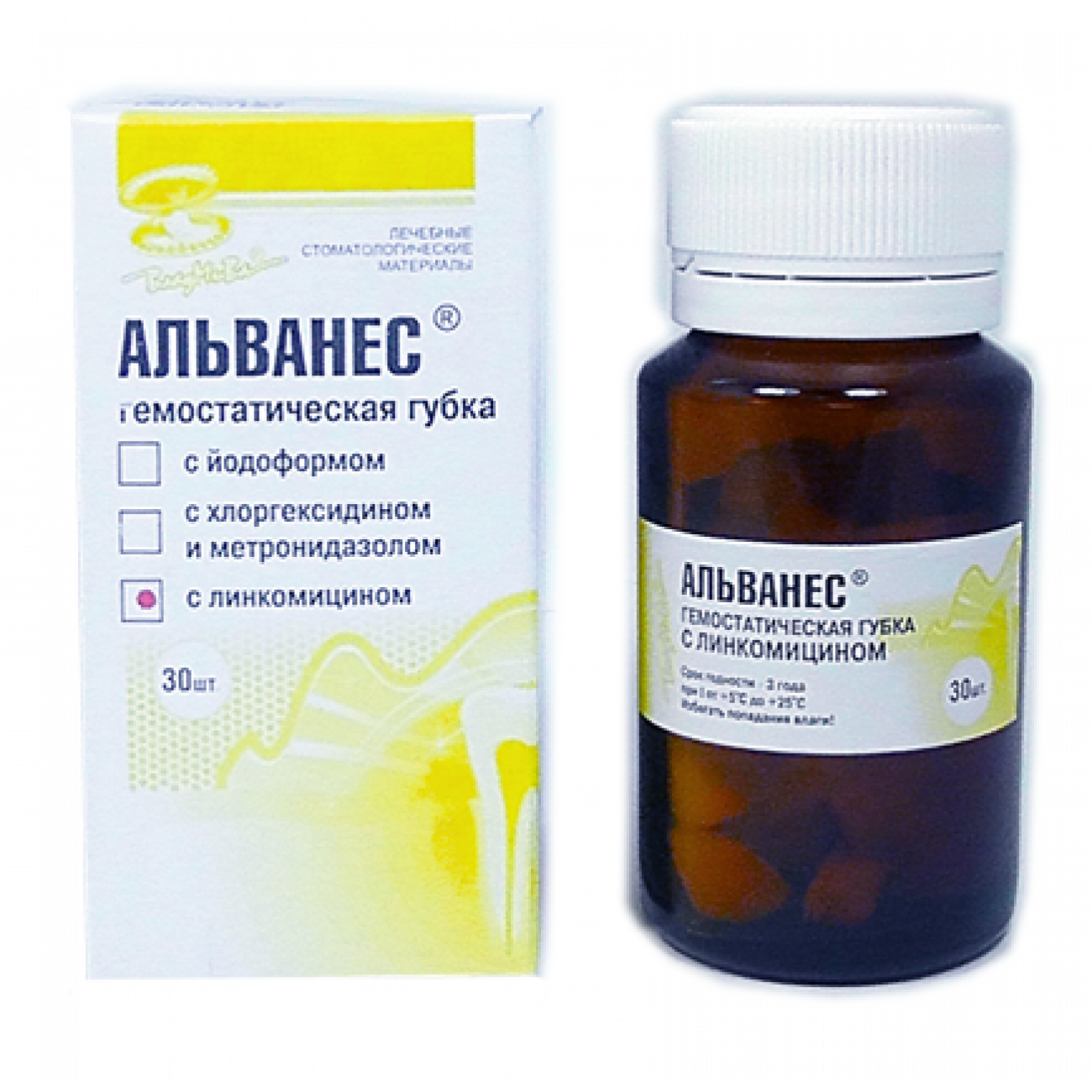 В качестве антисептика губка «Альванес» с йодоформом содержит иодоформ, который при соприкосновении с