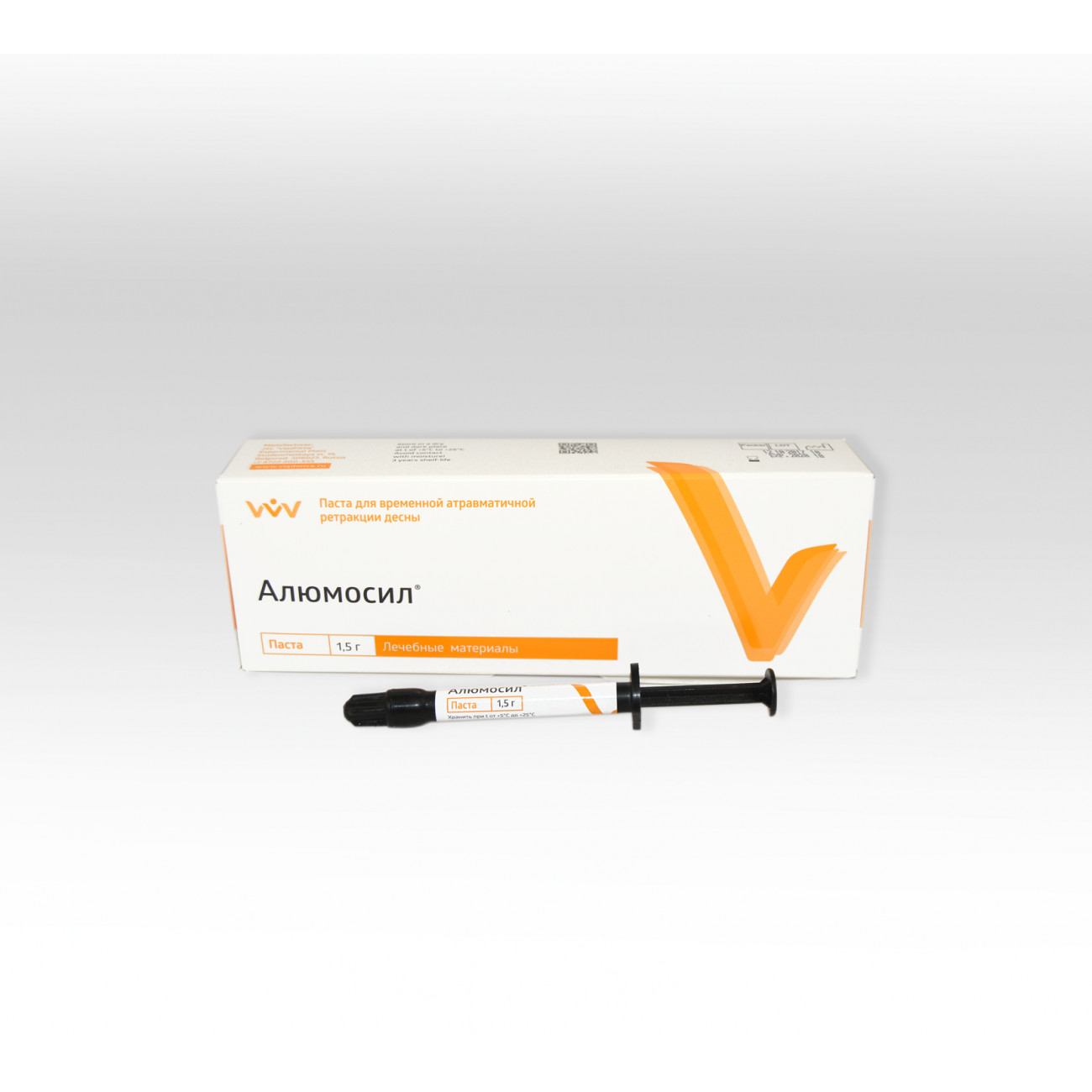 Материал «Алюмосил» представляет собой готовую к применению пасту, обладающую вяжущими и гемостатическими свойствами. Паста «Алюмосил» содержит: алюминий хлористый, определяющий вяжущее, гемостатическое и ретракционное свойства материала; инертный наполнитель, а также вкусовые и технологические добавки.
