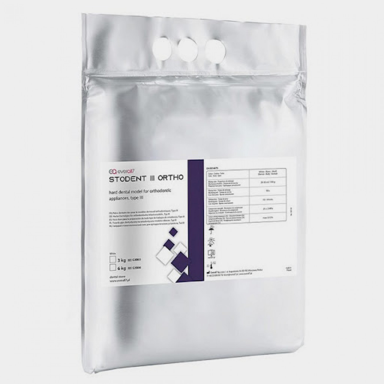 Stodent III Ortho — это твердый ортодонтический гипс 3-го класса, рекомендованный для изготовления архивных, диагномтических и рабочих моделей при изготовлении съемных ортодонтических аппаратов.