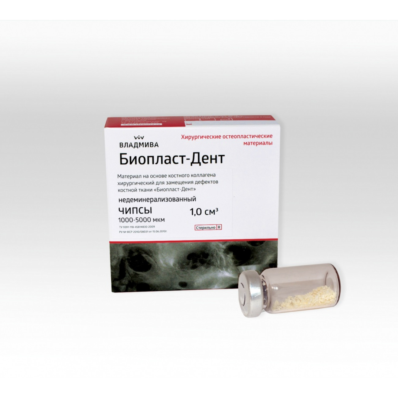 Материалы «Биопласт-Дент» представляют собой костную ткань КРС, очищенную методом химико-ферментативной обработки с сохранением гидроксиапатита биологического происхождения и пространственной архитектоники, что способствует фиксации биологически активных веществ на структурах биоматериала без снижения их биологической активности. Биоматериалы являются достаточно прочной, резорбируемой во времени матрицей (6-8 месяцев), со скоростью биорезорбции синхронизированной по времени с процессом образования новой ткани. Физиологическая резорбция протекает с образованием нетоксичных продуктов распада. Материалы являются идеальным остовом прорастания кровеносных сосудов и врастания клеток из костного ложа, т.к. обладают пористой структурой трабекулярной и диафизарной части трубчатых костей (микропоры, макропоры, гаверсовы каналы).