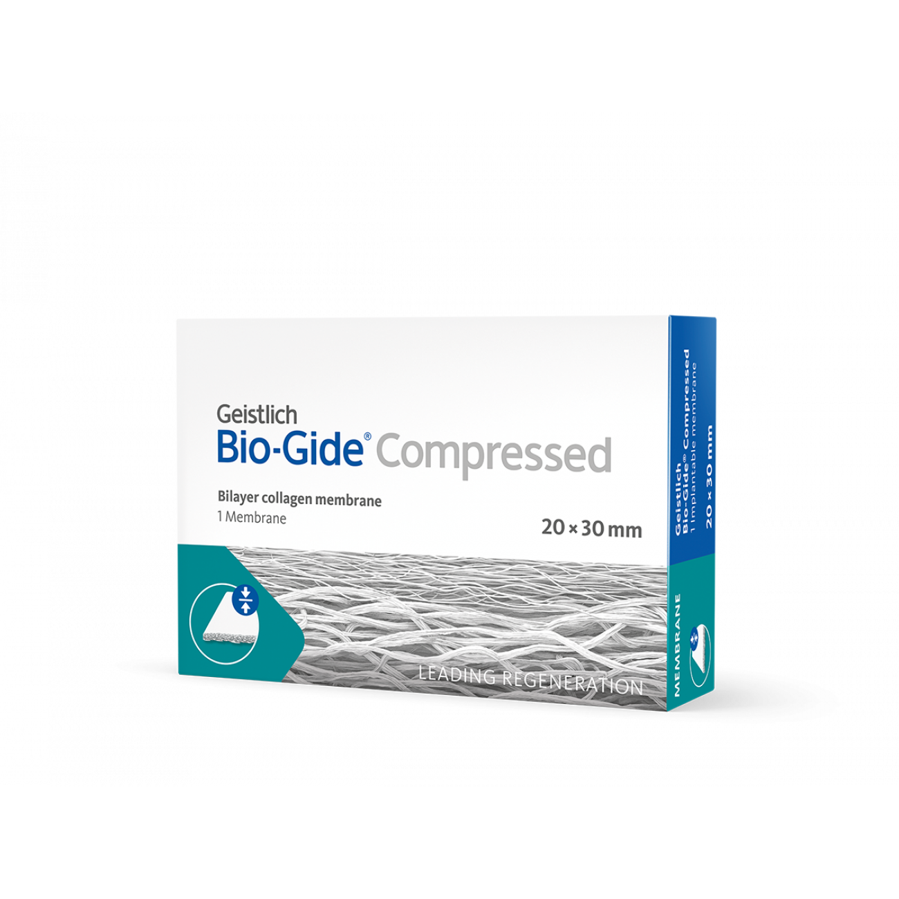Bio-Gide® (Био-Гайд) - это резорбируемая двухслойная мембрана для направленной костной регенерации. Состоит из коллагена I и III типа высокой степени очистки и обладает прекрасной биологической совместимостью. Коллаген выделяют из сертифицированных ветеринарной службой свиней и тщательно очищают для исключения антигенных факторов.