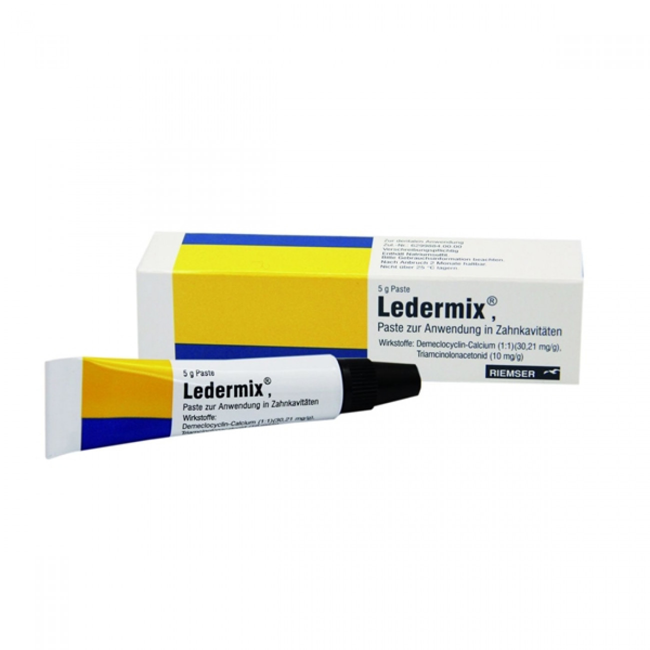 Ледермикс представляет собой комбинированный лекарственный препарат из группы тетрациклинов и синтетических кортикостероидных веществ. Механизм действия Ледермикс обусловлен совокупностью эффектов его компонентов. Демеклоциклин, входящий в состав препарата Ледермикс, представляет собой антибиотик широкого спектра действия группы тетрациклинов и активен в отношении грамположительных и грамотрицательных возбудителей, а также хламидий и микоплазм, спирохет и риккетсий, патогенных вне- и внутриклеточных возбудителей благодаря ингибированию рибосомного синтеза белка. Триамцинолон ацетонид, также входящий в состав препарата, является фторированным глюкокортикостероидом с сильно выраженными антиаллергическими, противовоспалительными и стабилизирующими мембрану свойствами. После нанесения на кожу Ледермикс, благодаря триамцинолона ацетониду, тормозит пролиферацию эпидермальных клеток и синтез коллагена, перемещение и пролиферацию лимфоцитов и гранулоцитов, стабилизирует мембрану тучных клеток, сужает сосуды кожи и угнетает развитие пигмента в меланоцитах, пролиферацию тучных клеток. Ледермикс относится к группе противовоспалительных и антибактериальных лекарственных средств.