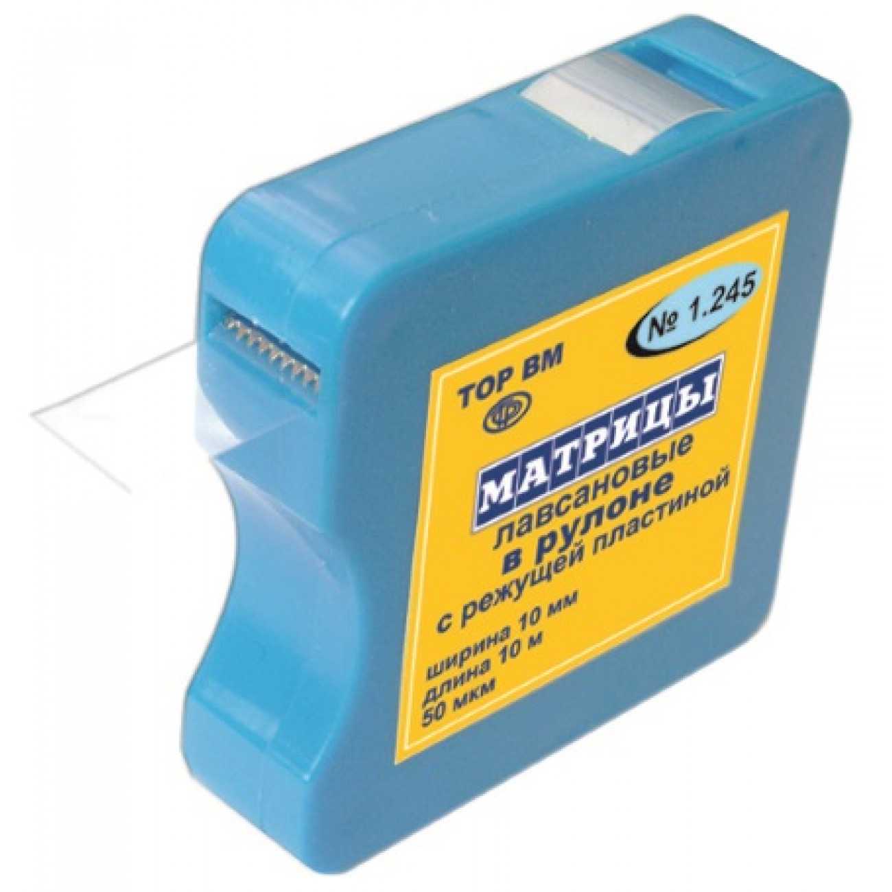 Матрицы лавсановые в квадратном рулоне с обрезателем (10 мм * 10 м) ТОР ВМ — это высококачественный материал, предназначенный для использования в стоматологии при создании временных пломб и других реставрационных работ.