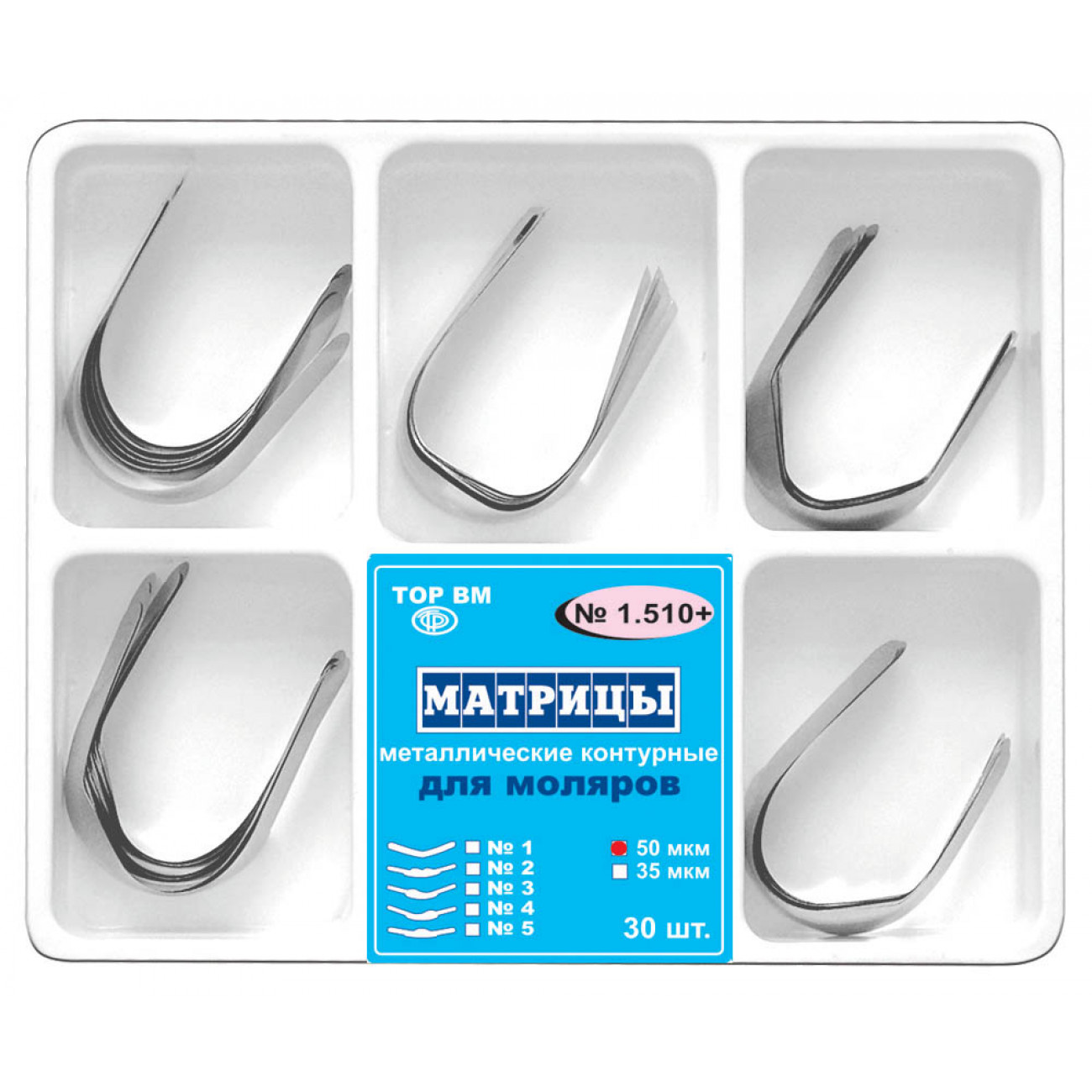 | Характеристики 1510 Матрицы контурметалдля моляров 5-форм | |