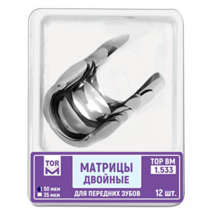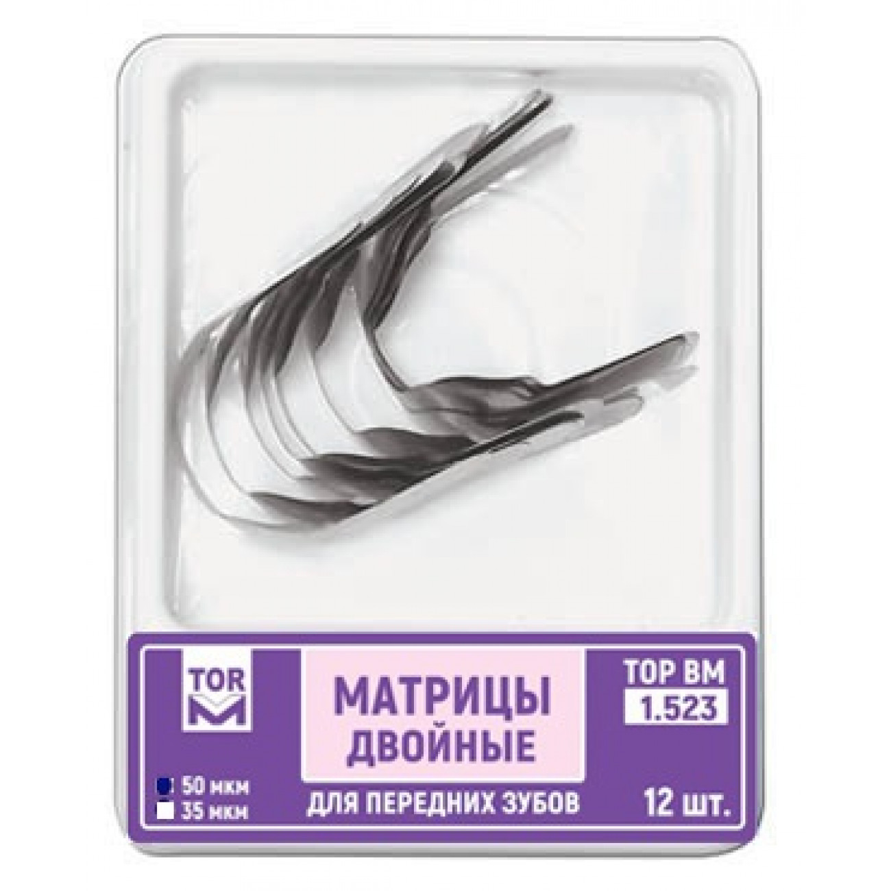 Матрицы двойные для передних зубов № 1.523, № 1.533 удобны для реставрации апроксимальных и цервикальных поверхностей передних зубов.