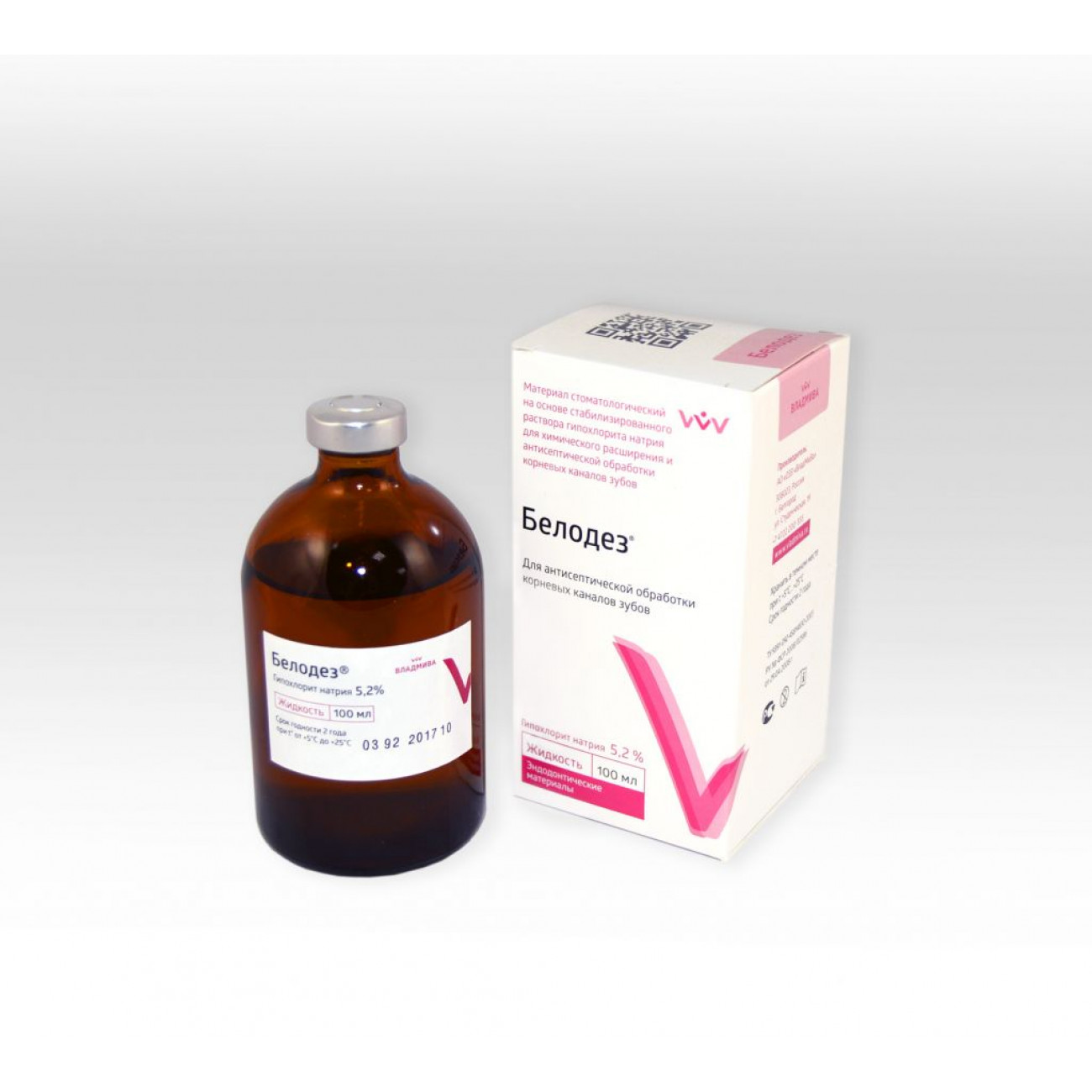 «Белодез» обладает бактерицидным действием на все грамположительные и грамотрицательные микроорганизмы, грибы и вирусы без цитотоксичности на уровне апекса. При обработке гипохлоритом натрия водород аминогрупп (-HN-) в молекулах белков замещается хлором (-ClN-), образуя хлорамин, который играет важную роль в антимикробной активности. Бактерицидное действие предлагаемых препаратов также обусловлено щелочными свойствами (рН 10,0-12,0).