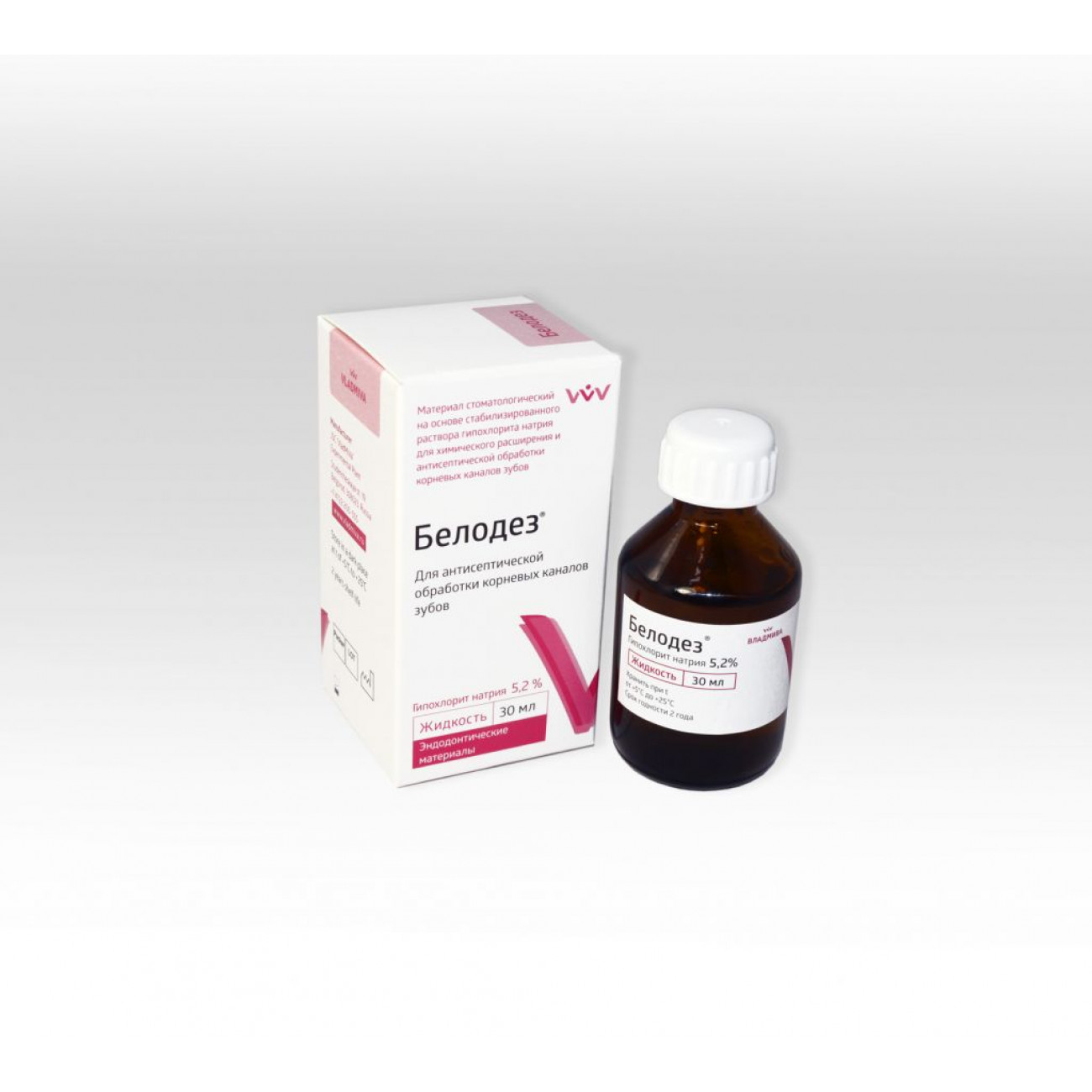 «Белодез» представляет собой стабилизированный раствор (гель) гипохлорита натрия, растворяет органическую основу дентина: как живые (химически фиксированные) так и некротизированные ткани. Гелеобразная форма выпуска позволяет успешно применять материал для антисептической обработки полостей зубов верхней челюсти, поскольку он обладает достаточной вязкостью, текучестью и щадяще воздействует на слизистую.