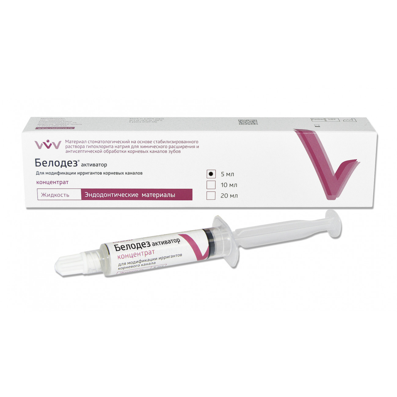 Материал «Белодез» активатор предназначен для понижения поверхностного натяжения эндодонтических ирригантов: