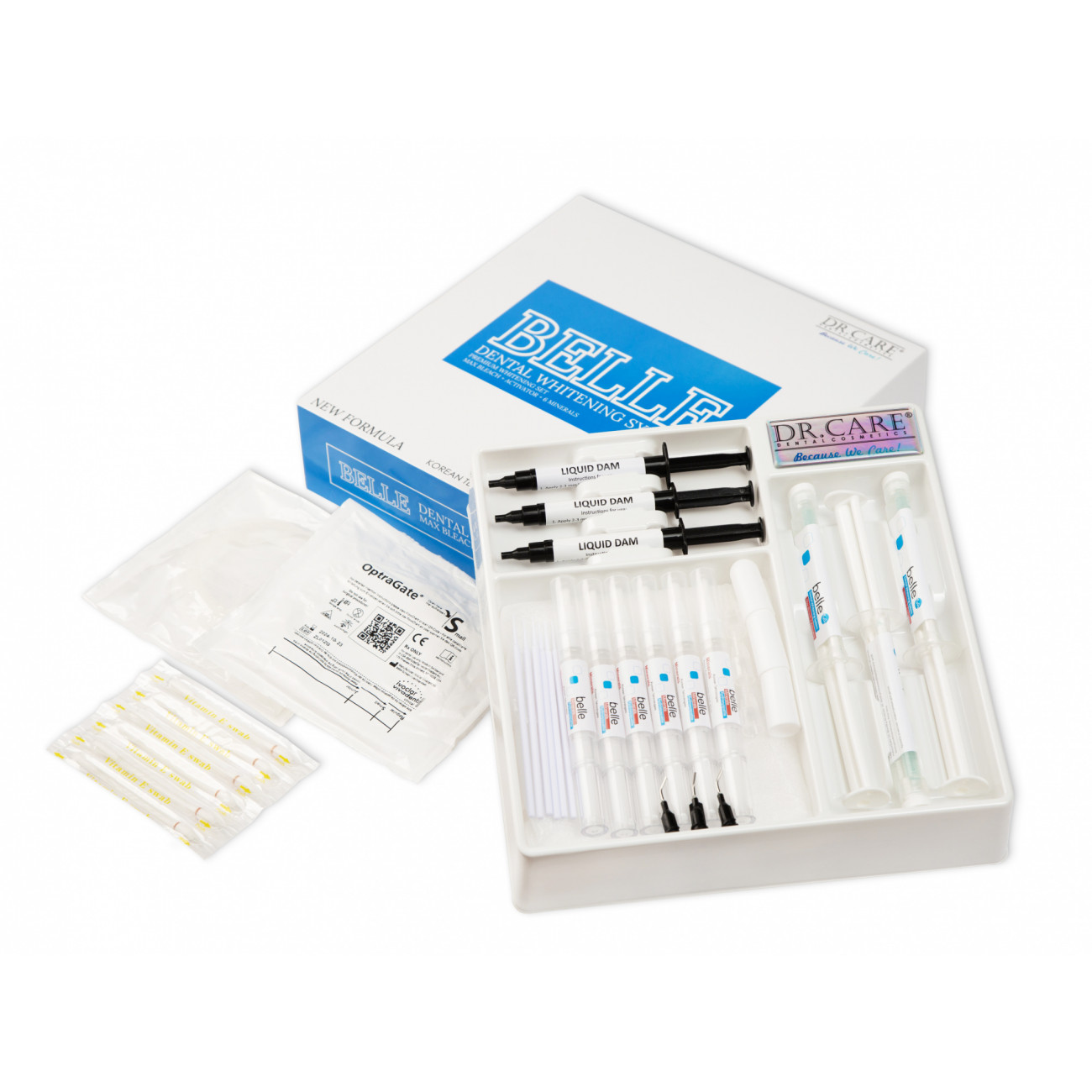 Профессиональная система отбеливания зубов Belle Max Bleach 39% от корейского производителя DR.CARE подходит как для клинического применения с активацией лампой или лазером, так и для амбулаторного отбеливания без использования ламп. Инновационный активатор X6 в составе препарата стимулирует выделение кислорода, что позволит достигнуть видимого результата всего за 3 аппликации.