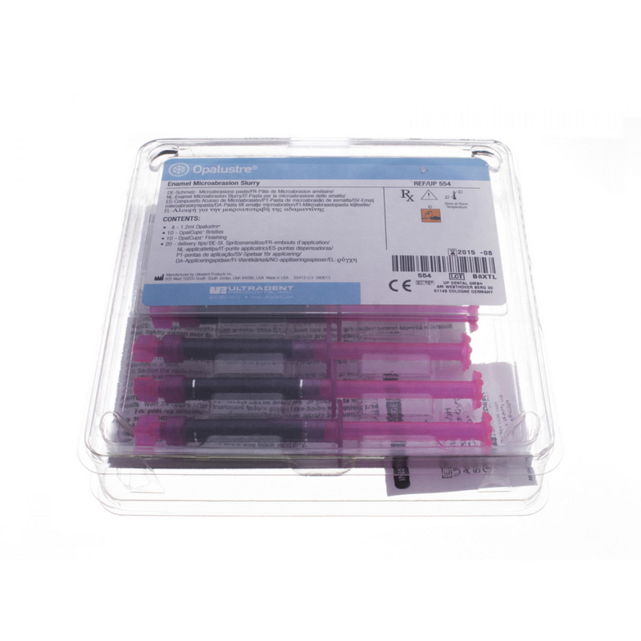 При применении Opalustre необходима тщательная изоляция с использованием коффердама, в связи с агрессивным составом геля. При проведении микроабразии мы проводим изоляцию текучим коффердамом OpalDam, скорость вращения микромотора устанавливается на низкие обороты. OpalCups Bristle – щеточки для втирания геля не должны его разбрызгивать при работе, во избежании ожога. Работа проводится без «нажатия».