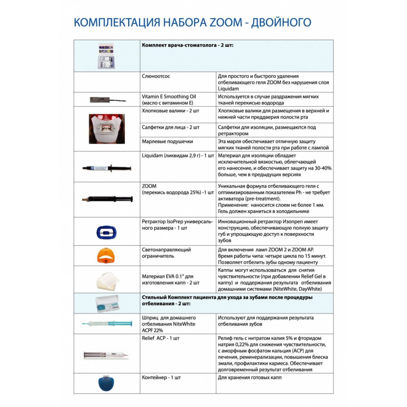 ZOOM - это процесс, который отбеливает пятна и потемнения в эмали и дентине. Это самая быстрая, эффективная и комфортная система отбеливания зубов. Это сисетма которая дает Вам мгновенные результаты на долгие годы. Всего лишь 3 ил 4 короткие 15-минутные аппликации дают изменение цвета в среднем на 8 оттенков.