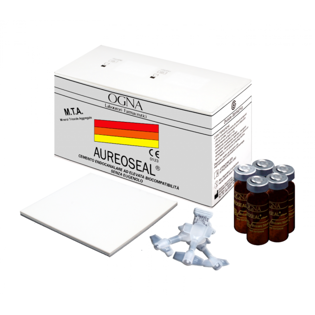 Разработка последнего поколения на основе МТА (Минерал Триоксид Агрегат) и реологических модификаторов. Уникальный состав препарата AUREOSEAL позволяет добиваться самых высоких результатов и обеспечивать безупречные свойства, необходимые для работы в эндодонтической области и прямого покрытия пульпы. Уникальные характеристики данного препарата делают его подходящим для широкого спектра применений, включая тяжелые клинические случаи. Материал AUREOSEAL состоит из гидрофильных микрочастиц, содержащих модифицированные минеральные оксиды, гидрофильность которых позволяет достичь эффективного затвердевания даже во влажной среде, в присутствии крови и других органических жидкостей. Его сильно щелочной pH, который проявляется в момент затвердевания, ограничивает рост бактерий, а высокая биосовместимость материала ускоряет процесс заживления.