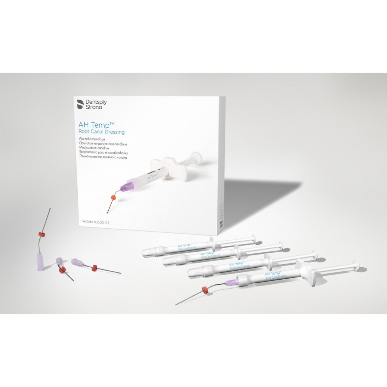 AH Temp - материал для временного пломбирования каналов на основе гидрооксида кальция, 4 шприца по 0,75 мл.