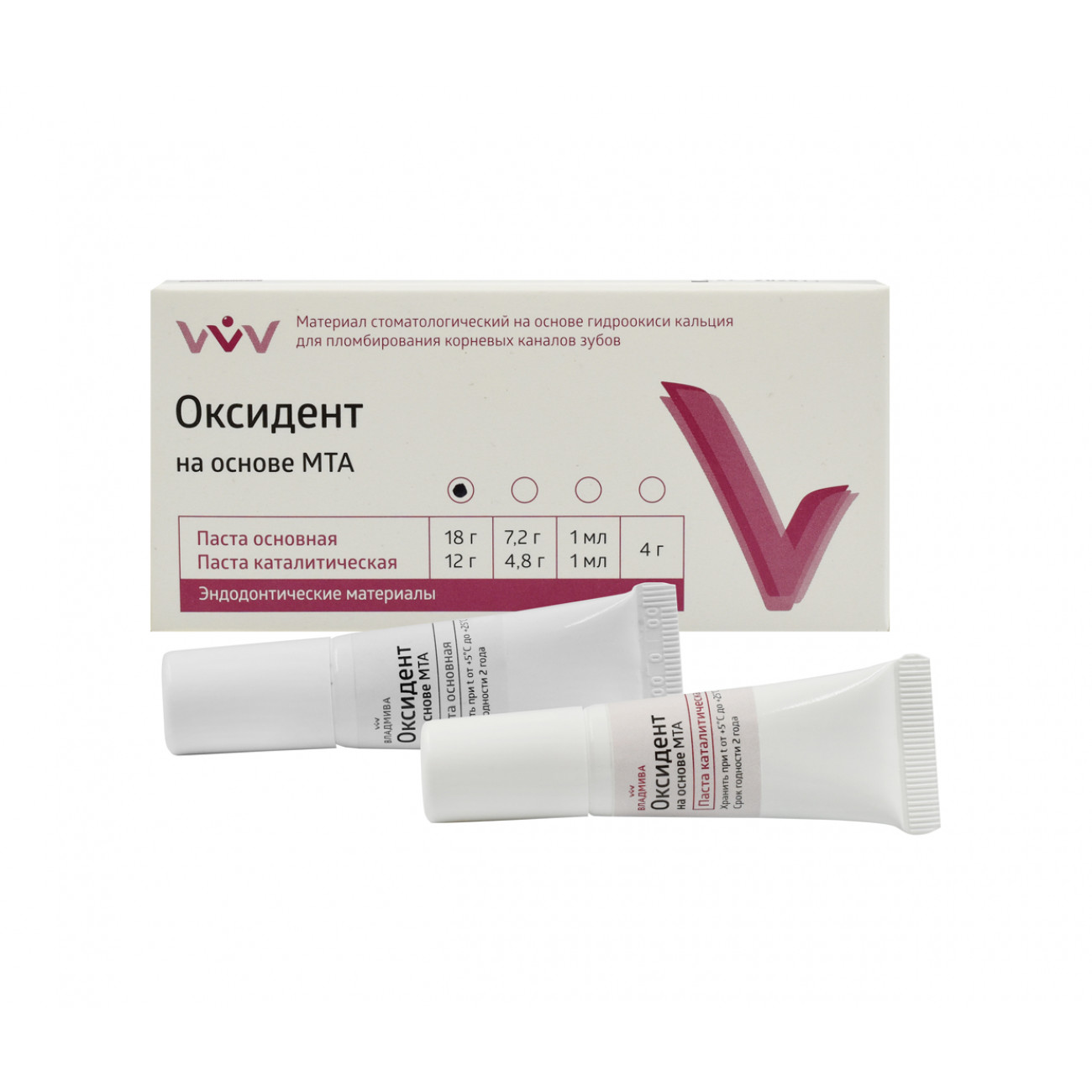 Материал «Оксидент» на основе МТА выпускается в виде комплекта: