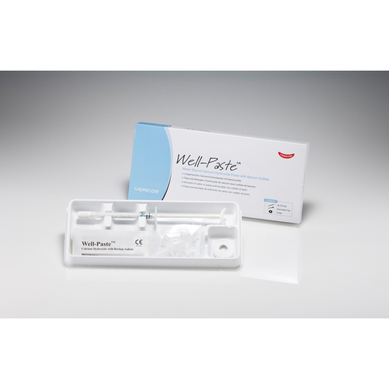 Well-Paste - материал для пломбирования каналов (Гидроксид кальция с сульфатом бария, 1 шприц 2 г) Well-Paste – пломбировочный материал для пульпы и заражённых корневых каналов, также он применяется как качественный внутриканальный медикамент.