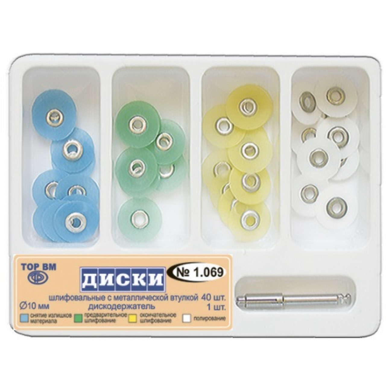 | Характеристики 1069 10 мм Полировочные диски 4 цвета ТОР ВМ | |