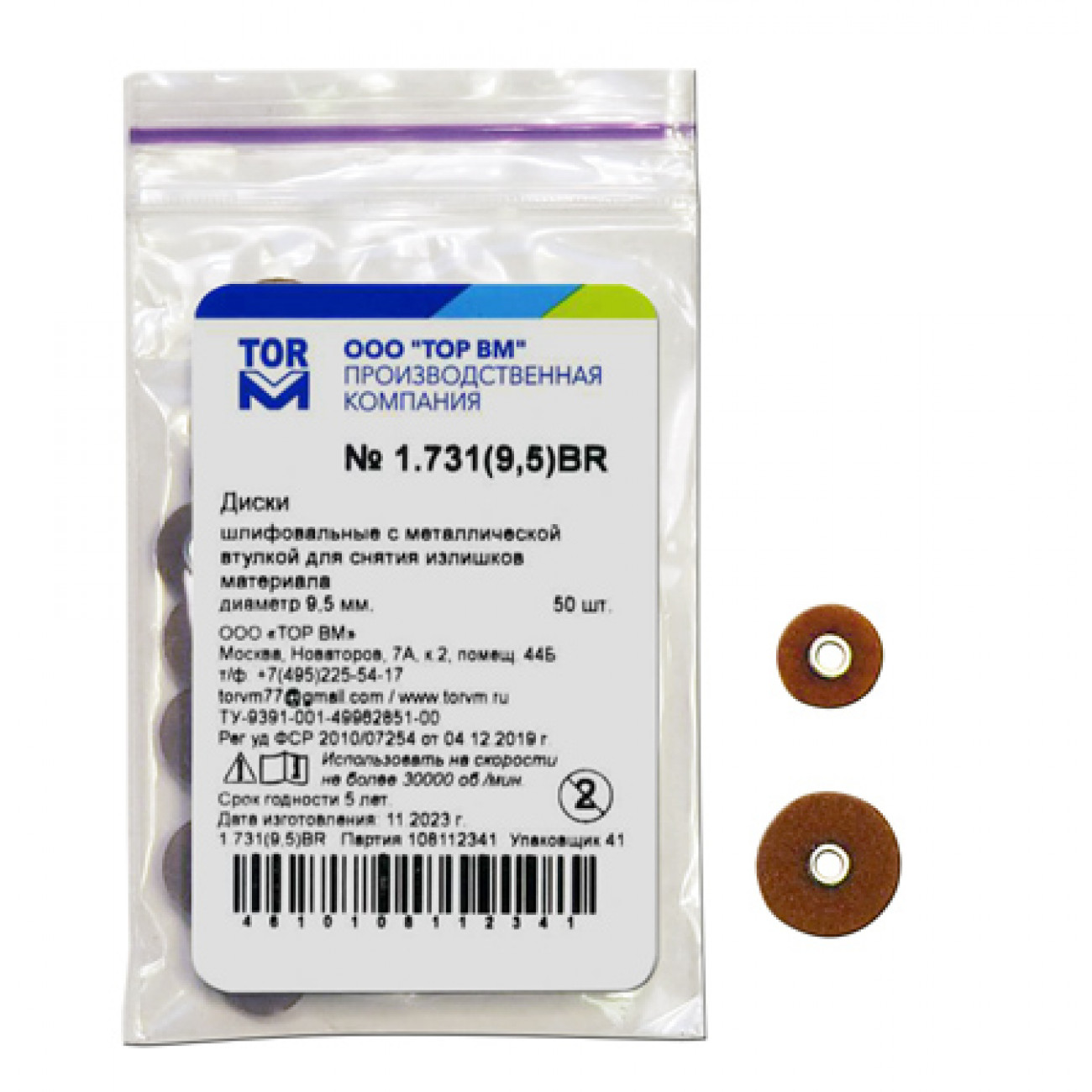 При заказе следует указывать требуемый диаметр, например, заказав № 1.731BR-9,5, Вы получаете набор дисков (50 шт.) для снятия излишков материала диаметром 9,5 мм.