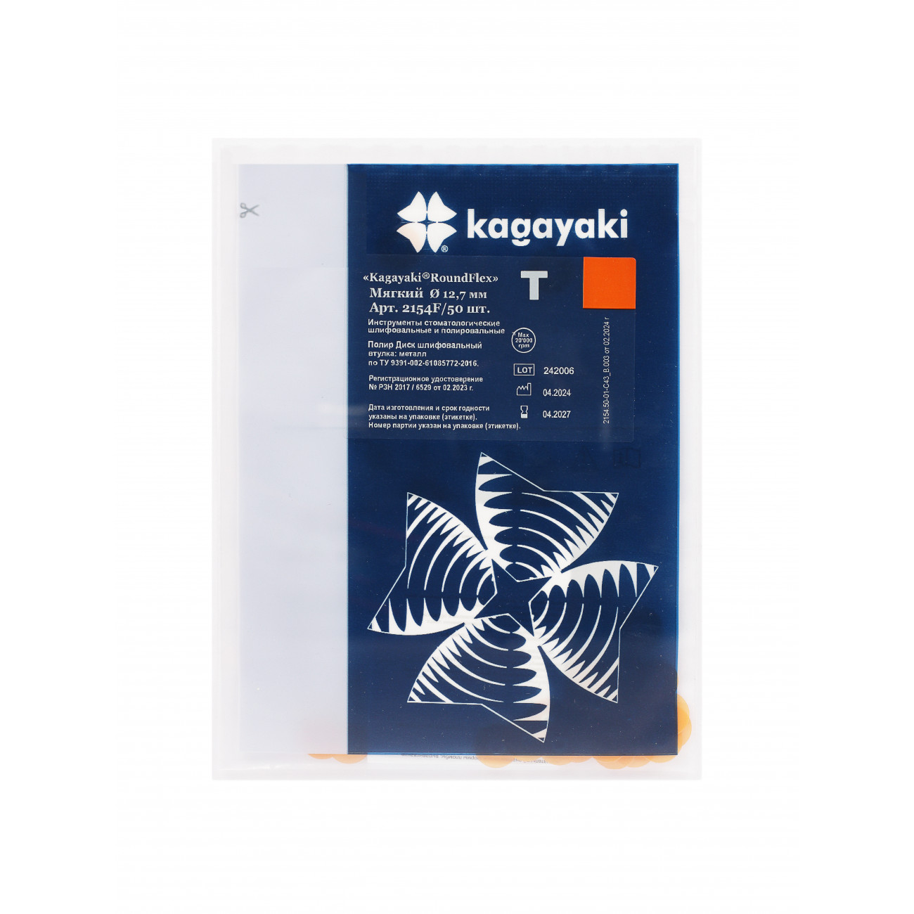 Kagayaki RoundFlex T 2154F/50 — профессиональная система шлифовальных и полировальных дисков средней жёсткости, оснащённых металлической втулкой. Диски мелкой абразивности разработаны специально для придания гладкой поверхности реставрации и имитации блеска собственных тканей зуба. Сочетание высокопрочного полиэстера с частицами оксида алюминия обеспечивает исключительную износостойкость и длительный срок службы. Для надёжной фиксации используется уникальная система крепления Kagayaki: специальный дискодержатель не только обеспечивает прочное соединение с металлической втулкой, но и создаёт оптимальное положение рабочей поверхности за счёт возвышения головки над втулкой диска. Цанговый механизм гарантирует стабильную фиксацию диска на оси устройства, обеспечивая безопасность и эффективность.