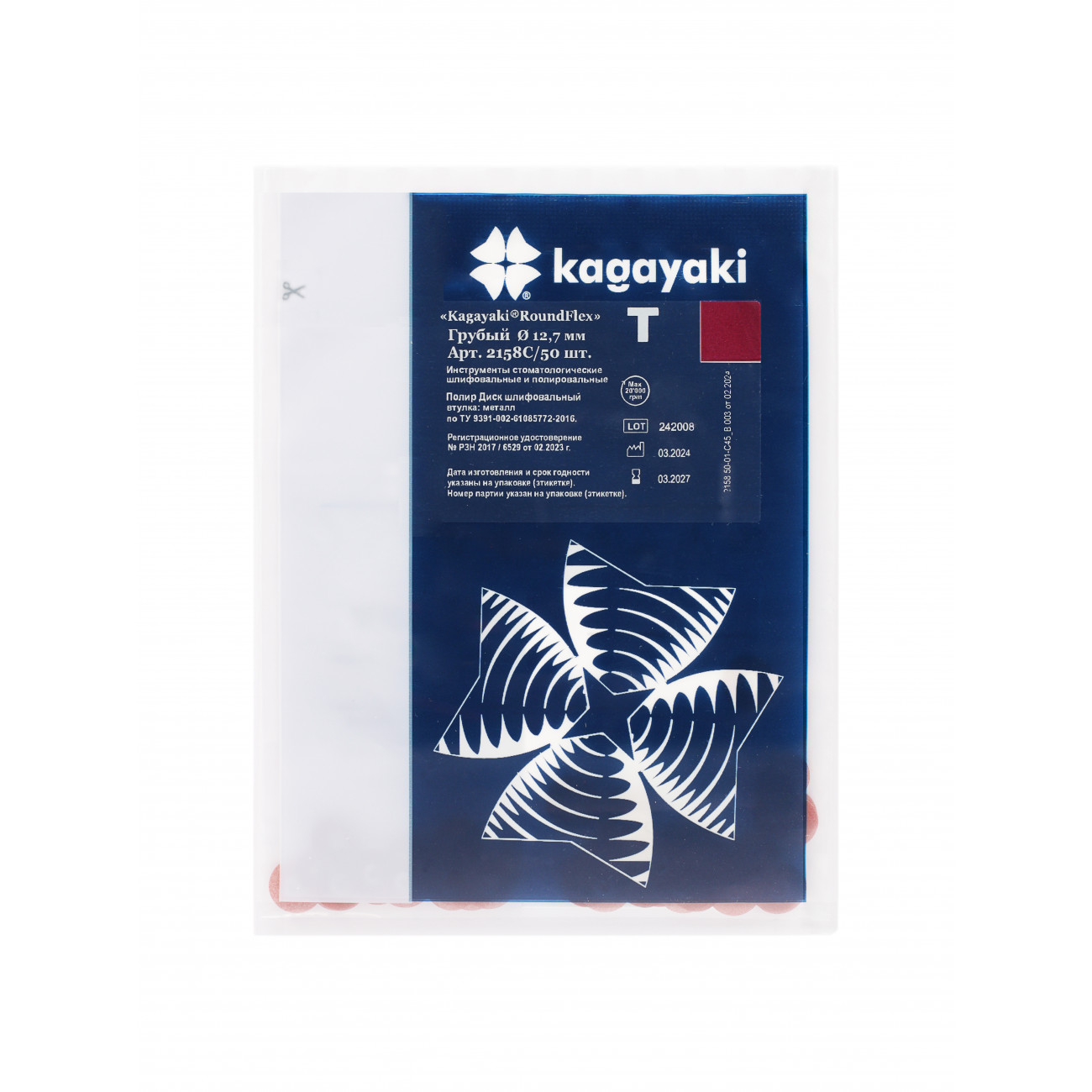 Kagayaki RoundFlex T 2158C/50 — профессиональная система шлифовальных и полировальных дисков средней жёсткости, оснащённых металлической втулкой. Диски грубой абразивности разработаны специально для точного удаления излишков пломбировочного материала и корректировки контуров реставраций. Сочетание высокопрочного полиэстера с частицами оксида алюминия обеспечивает исключительную износостойкость и длительный срок службы. Для надёжной фиксации используется уникальная система крепления Kagayaki: специальный дискодержатель не только обеспечивает прочное соединение с металлической втулкой, но и создаёт оптимальное положение рабочей поверхности за счёт возвышения головки над втулкой диска. Цанговый механизм гарантирует стабильную фиксацию диска на оси устройства, обеспечивая безопасность и эффективность.