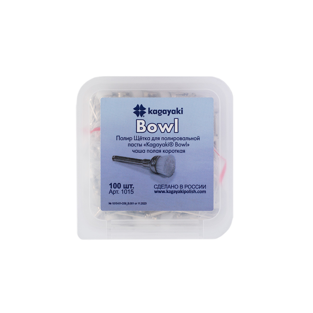 Щётки Kagayaki Bowl — это нейлоновые щётки, которые разработаны для профессиональной чистки и финишной полировки зубов, обеспечивая высокую эффективность при работе с абразивными и полировальными пастами. Конструкция щётки позволяет качественно обрабатывать поверхности реставраций из композитов, компомеров, стеклоиономеров и керамики, удаляя мягкие и твёрдые отложения, пигментации, а также придавая гладкость и блеск даже в сложнодоступных зонах — окклюзионных и апроксимальных поверхностях.