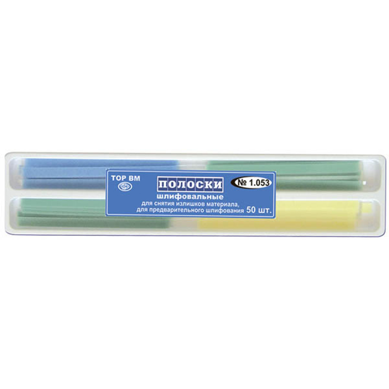 Набор шлифовальных штрипсов ТОР ВМ 1.053 на лавсановой основе - удобное решение для обработки пломб из стоматологических композитов на интерпроксимальных и придесневых поверхностях зубов в условиях повышенной влажности полости рта.