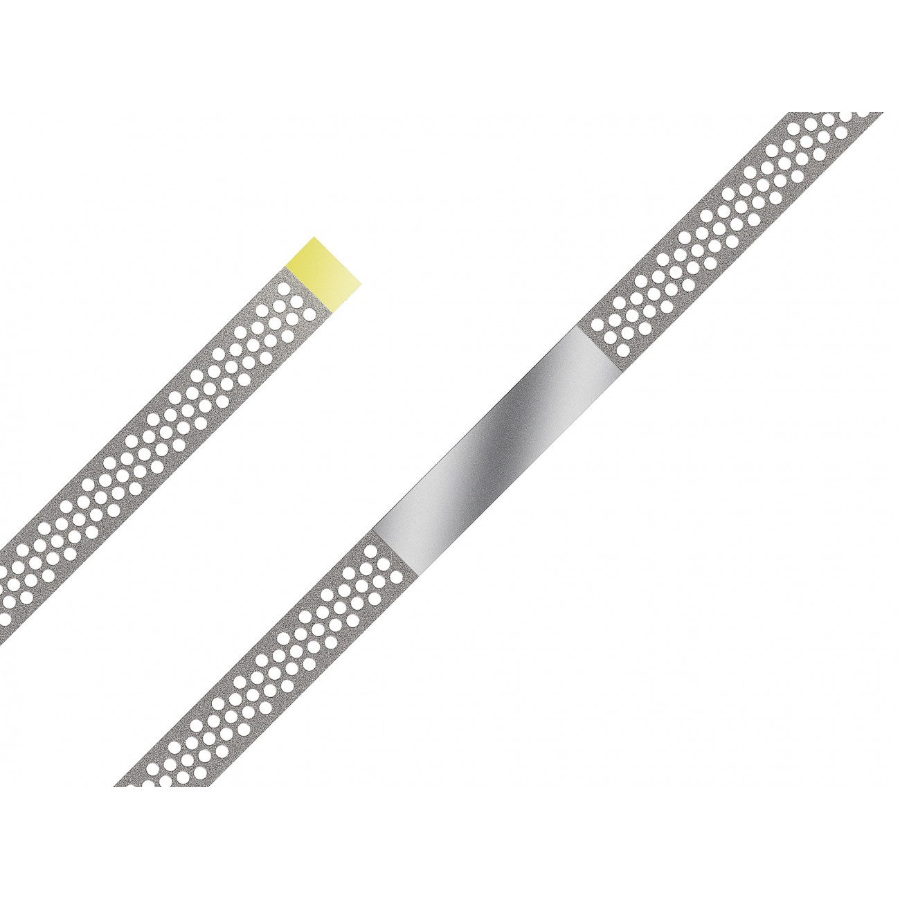Полоски алмазные перфорированные стоматологические NTI FS3-SFP сверхмелкой зернистости с желтой маркировкой предназначены для ручной шлифовки апроксимальных поверхностей керамических пломб, коронок и виниров в межзубном пространстве, а также для препарирования зубов в ортодонтии.