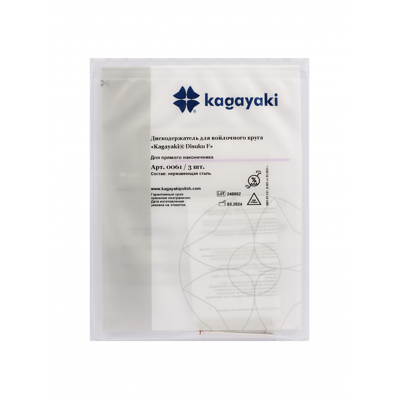 У нас вы можете купить длинные дискодержатели для полировочных тонкошёрстных войлочных кругов Disuku F от Kagayaki по доступной цене.