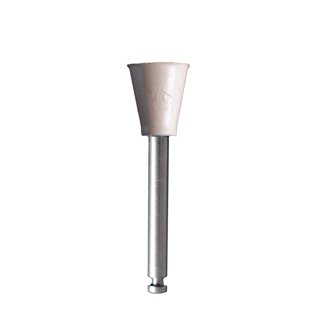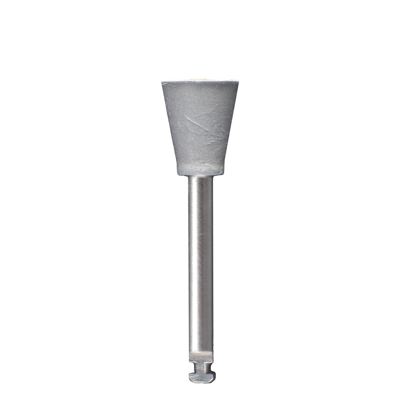 Полиры изготовлены из полимеризованного силикона с алмазным наполнителем: серый вариант имеет зернистость 10-30 мкм для предварительной полировки, а бежевый — 3-10 мкм для финишной. Хвостовики из нержавеющей стали обеспечивают надежную фиксацию в наконечнике.
