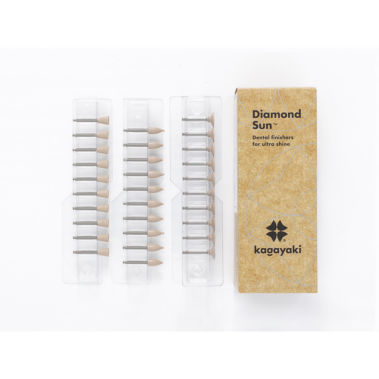 Набор полиров Kagayaki Diamond sun DS 30/1,2,3 — одноразовые алмазные полиры трёх различных форм (диск, пуля, чашка) для безупречного полирования композитных реставраций с предварительно сформированными контурами. Наполненные микротонкой алмазной крошкой на уретановом связующем с мелкой абразивностью (10-30 мкм), они дают возможность получить гладкую поверхность реставрации и создать имитацию блеска собственных тканей зуба.
