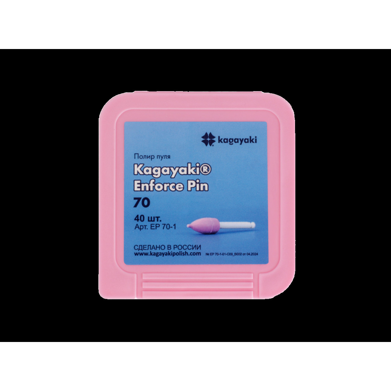 Набор полиров Kagayaki Enforce pin — одноразовые уретановые полиры на полимерном пине в форме пули, предназначенные для выравнивания шероховатостей и придания гладкости поверхностям композитных, компомерных и стеклоиономерных реставраций. Наполненные оксидом алюминия в качестве абразивного вещества на уретановом связующем, они отлично формируют поверхность.