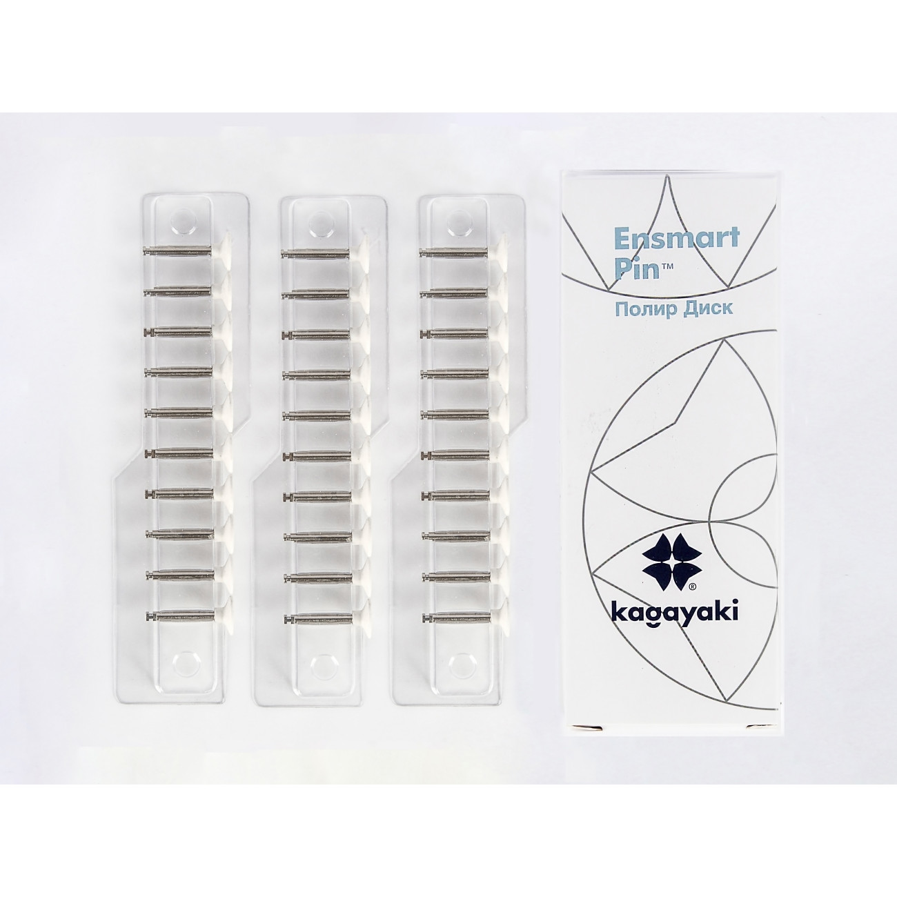 Набор полиров Kagayaki Ensmart pin — одноразовые силиконовые полиры на стальном пине в форме диска, предназначенные для удаления излишков материала, контурирования и придания формы поверхностям композитных, компомерных и стеклоиономерных реставраций. Наполненные оксидом алюминия в качестве абразивного вещества на силиконовом связующем, они отлично формируют поверхность.