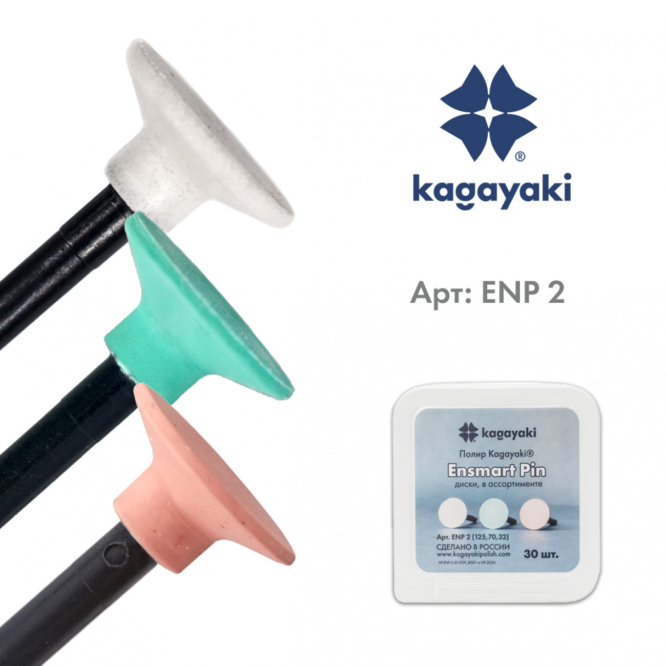 Набор полиров Kagayaki Ensmart pin — одноразовые силиконовые полиры на полимерном пине в форме диска различной абразивности, предназначенные для контурирования, шлифовки и финишной обработки поверхностей композитных, компомерных и стеклоиономерных реставраций. Наполненные оксидом алюминия в качестве абразивного вещества на силиконовом связующем, они отлично шлифуют и полируют поверхность.